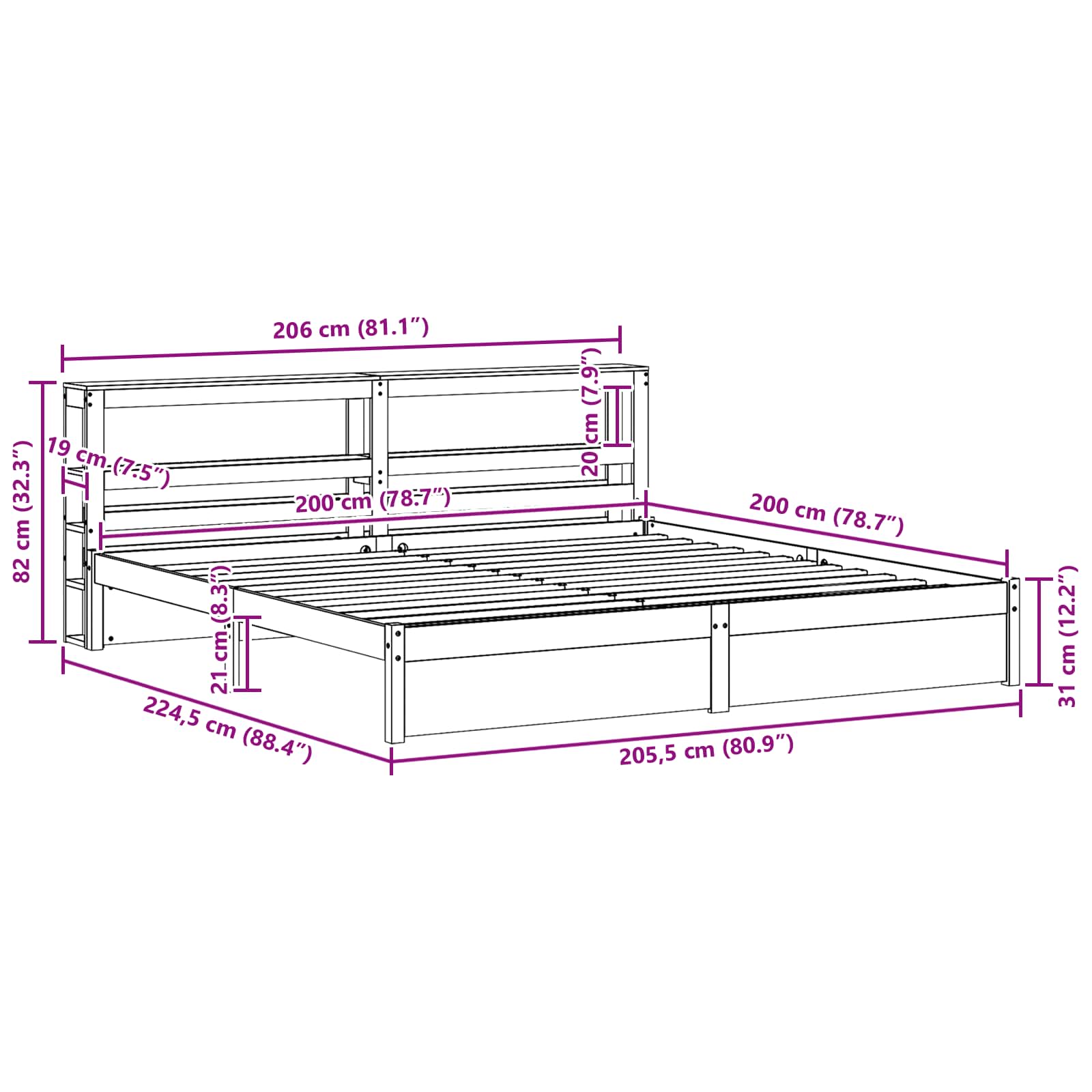 - Matratzengröße: Kaiserbett (200 cm x 200 cm oder 79" x 79")