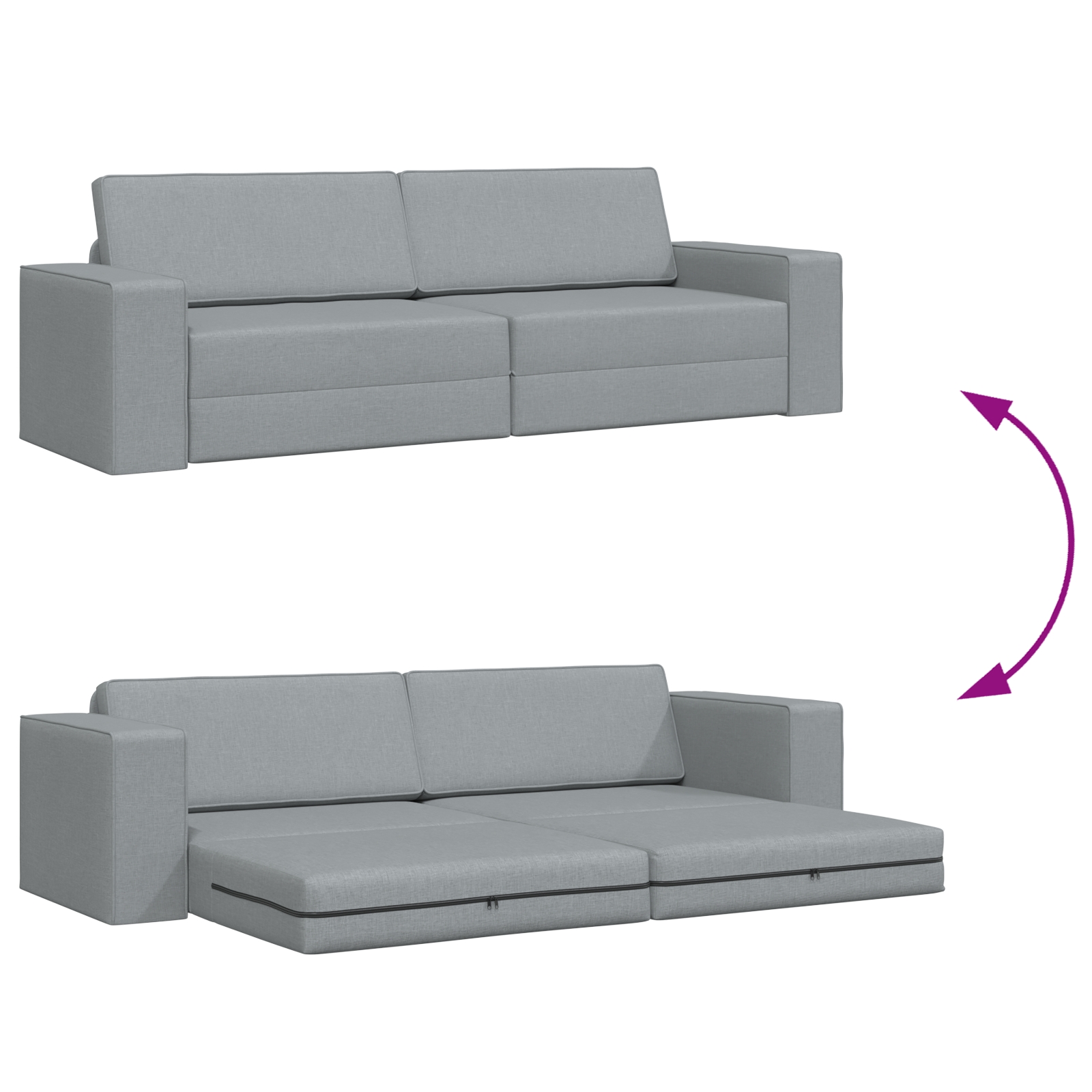 Dieses Boden Schlafsofa vereint Vielseitigkeit und Stil und ist eine geniale Ergänzung für dein Wohnzimmer oder die Lounge. Es wandelt sich schnell von einem bequemen Sofa zu einem Bett, sodass du Gäste bequem bewirten kannst, ohne zusätzliches Mobiliar zu brauchen. Vielseitige Sitzgelegenheiten: Dieses Sofa lässt sich einfach in ein Bett verwandeln, was es perfekt für entspannende Zeit oder Übernachtungsbesuche macht. Der Wechsel ist kinderleicht und schnell, also ideal für den Alltag und zum Unterhalten. Geräumiger Komfort: Für bis zu drei Personen konzipiert, bietet dieses Schlafsofa genug Platz, damit sich alle entspannen können, ohne eingeengt zu werden. Die breite Sitzfläche von 200 cm sorgt für viel Platz zum Chillen mit Freunden oder Familie, was klasse für gesellige Zusammenkünfte ist. Zeitgenössischer Stil: Der moderne hellgraue Stoff und das schicke Design bringen eine elegante Note in dein Zuhause. Es fügt sich nahtlos in verschiedene Stile ein und verbessert die Atmosphäre jedes Raums. Einfache Pflege: Die abnehmbaren Sitzbezüge mit Reißverschlüssen machen die Reinigung super einfach, sodass du das Sofa in einem top Zustand halten kannst. Regelmäßige Pflege sorgt dafür, dass deine Investition frisch und einladend bleibt. Solide Konstruktion: Hergestellt aus hochwertigem Naturholz und robustem Schaum, ist dieses Schlafsofa für den täglichen Gebrauch konzipiert und bietet dir stabile Unterstützung.