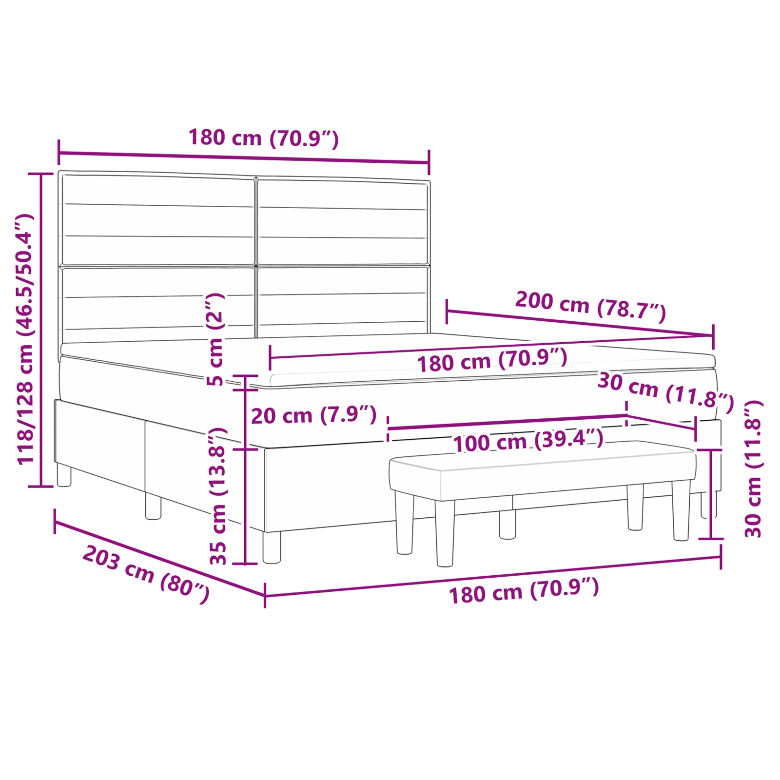 - Lieferumfang: 1x Bettgestell, 1x Kopfteil, 1x Matratze, 1x Matratzenauflage, 1x Bank