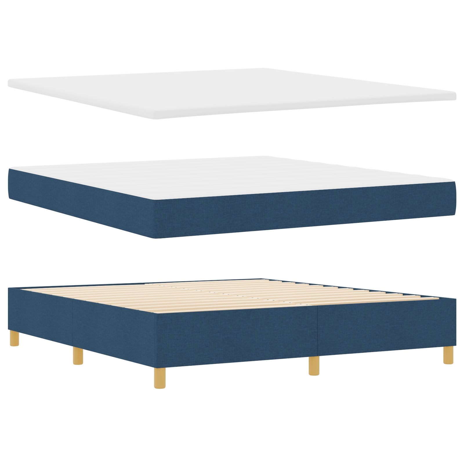 Dieses Boxspringbett kombiniert Komfort und Stil und ist eine großartige Ergänzung für jeden, der sein Schlafzimmer aufpeppen möchte. Der trendige blaue Stoff und der stabile Holzrahmen machen das Bett zu einem echten Blickfang, der Eleganz und eine entspannende Atmosphäre schafft. Es bietet Platz für zwei Erwachsene. Bequemer Schlaf: Die integrierte Matratze und die Schaumstoffschicht bieten eine tolle Unterstützung für einen erholsamen Schlaf. Das leichte Design ermöglicht es, das Bett problemlos zu bewegen. Robuste Bauweise: Das Bett hat einen stabilen Holzrahmen, der für Langlebigkeit sorgt. Du kannst dich entspannen, denn du hast eine sichere Basis für den täglichen Gebrauch. Modernes Design: Der matte blaue Stoff bringt Frische und eine zeitgemäße Note in dein Zimmer. Kombiniere es mit deiner liebsten Bettwäsche, um eine einladende Schlafumgebung zu gestalten. Praktische Bank: Die Bank hat zwei Funktionen; sie eignet sich super zum Sitzen und kann auch zur Aufbewahrung von Bettwäsche oder persönlichen Gegenständen genutzt werden, was sie zu einer praktischen Wahl für jedes Schlafzimmer macht. Einfach in der Pflege: Der schmutzabweisende Stoff erleichtert das Sauberhalten und sorgt dafür, dass das Bett toll aussieht, ohne viel Aufwand.