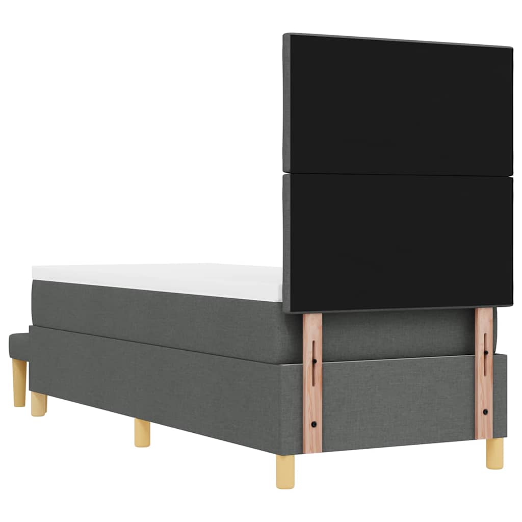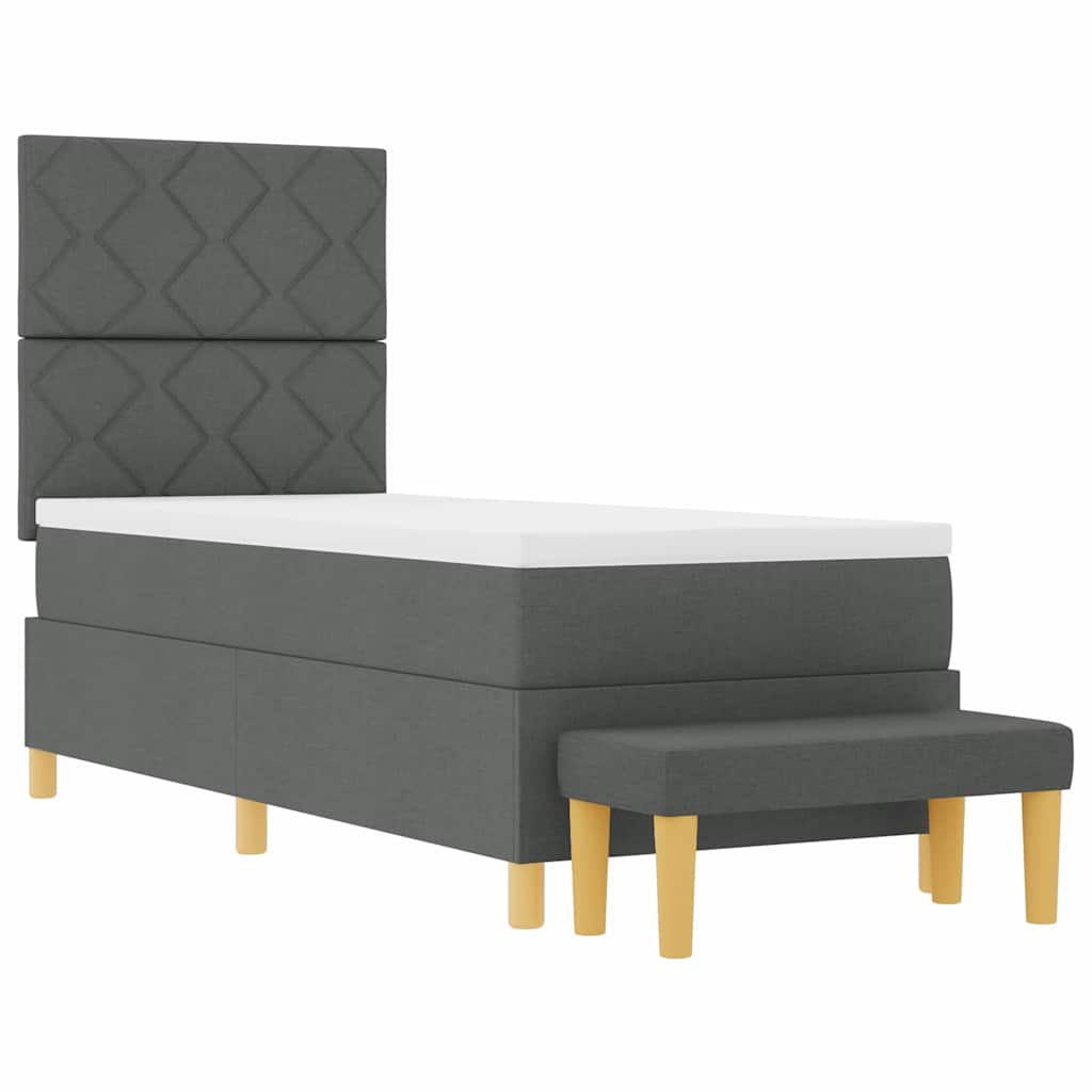 Dieses Boxspringbett vereint Komfort und Stil und ist eine perfekte Wahl, um dein Schlafzimmer aufzupeppen. Mit dem trendigen dunkelgrauen Bezug und dem stabilen Holzrahmen ist es nicht nur ein Bett, sondern auch ein schickes Stück, das Eleganz und Ruhe in jeden Raum bringt – ideal für einen einzelnen Erwachsenen. Bequemer Schlaf: Die Matratze und die Schaumschicht bieten dir tollen Halt für einen ruhigen Schlaf. Außerdem ist sie leicht genug, um sie einfach zu bewegen, was dir Flexibilität in deinem Raum gibt. Robuste Konstruktion: Hergestellt aus stabilem Naturholz für lange Haltbarkeit. Schlaf in Ruhe, denn du hast eine solide Basis für den täglichen Gebrauch. Moderne Ästhetik: Der dunkelgraue Stoff bringt einen coolen, modernen Vibe in dein Zuhause. Kombiniere es mit deiner Lieblingsbettwäsche für eine gemütliche Schlafumgebung. Funktionale Bank: Die Bank ist praktisch zum Sitzen oder als Ablagefläche für Bettwäsche und persönliche Dinge, was sie für jedes Schlafzimmer-Setup nützlich macht. Einfache Pflege: Einfach mit einem trockenen Tuch abwischen und scharfe Chemikalien meiden, um sie frisch und stylisch zu halten, ohne viel Aufwand.