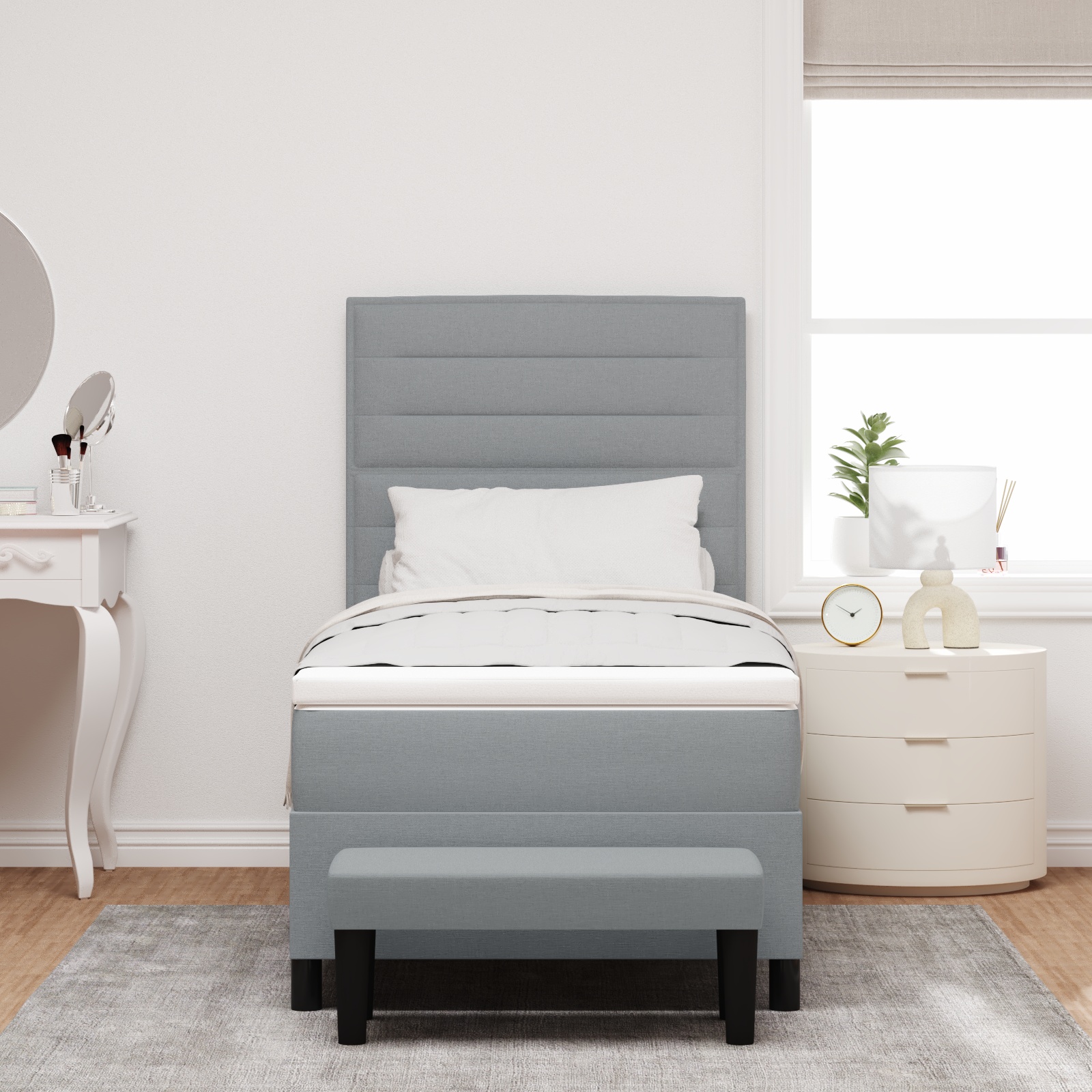 Dieses Boxspringbett bietet Stil und Funktionalität – genau das Richtige für jedes Erwachsenen-Schlafzimmer. Das elegante hellgraue Finish und die stabilen Stahlbeine verleihen ihm einen modernen Look, der gleichzeitig warm und einladend ist. So schläfst du gut, während dein Raum top aussieht. Stylisches Design: Der minimalistische hellgraue Stoff verleiht deinem Schlafzimmer einen modernen Akzent und passt zu verschiedenen Stilen. Dieses schicke Design sticht hervor und schafft eine entspannende Atmosphäre. Komfortable Unterstützung: Mit einer hochwertigen Matratze und einem weichen Topper garantiert dieses Bett einen bequemen Schlaf. Die Matratze passt sich deinem Körper an und sorgt für die beste Unterstützung die ganze Nacht. Langlebigkeit: Stabil gebaut mit hochwertigen Materialien, inklusive einem robusten Stahlrahmen, kann dieses Bett bis zu 300 kg tragen. Schlaf ruhig und sicher in dem Wissen, dass du ein stabiles Bett unter dir hast. Einfache Montage: Das Bettgestell lässt sich schnell zusammenbauen mit den mitgelieferten Werkzeugen, was den Aufbau für zwei Personen zu einer einfachen Aufgabe macht. Befolge einfach die klaren Anweisungen für eine unkomplizierte Montage. Vielseitige Nutzung: Dieses Bett passt zu jedem Schlafzimmerdesign und bietet Funktionalität und Stil, um deinen Wohnraum aufzuwerten. Perfekt für Erwachsene, die das Schlaf-Erlebnis verbessern möchten.