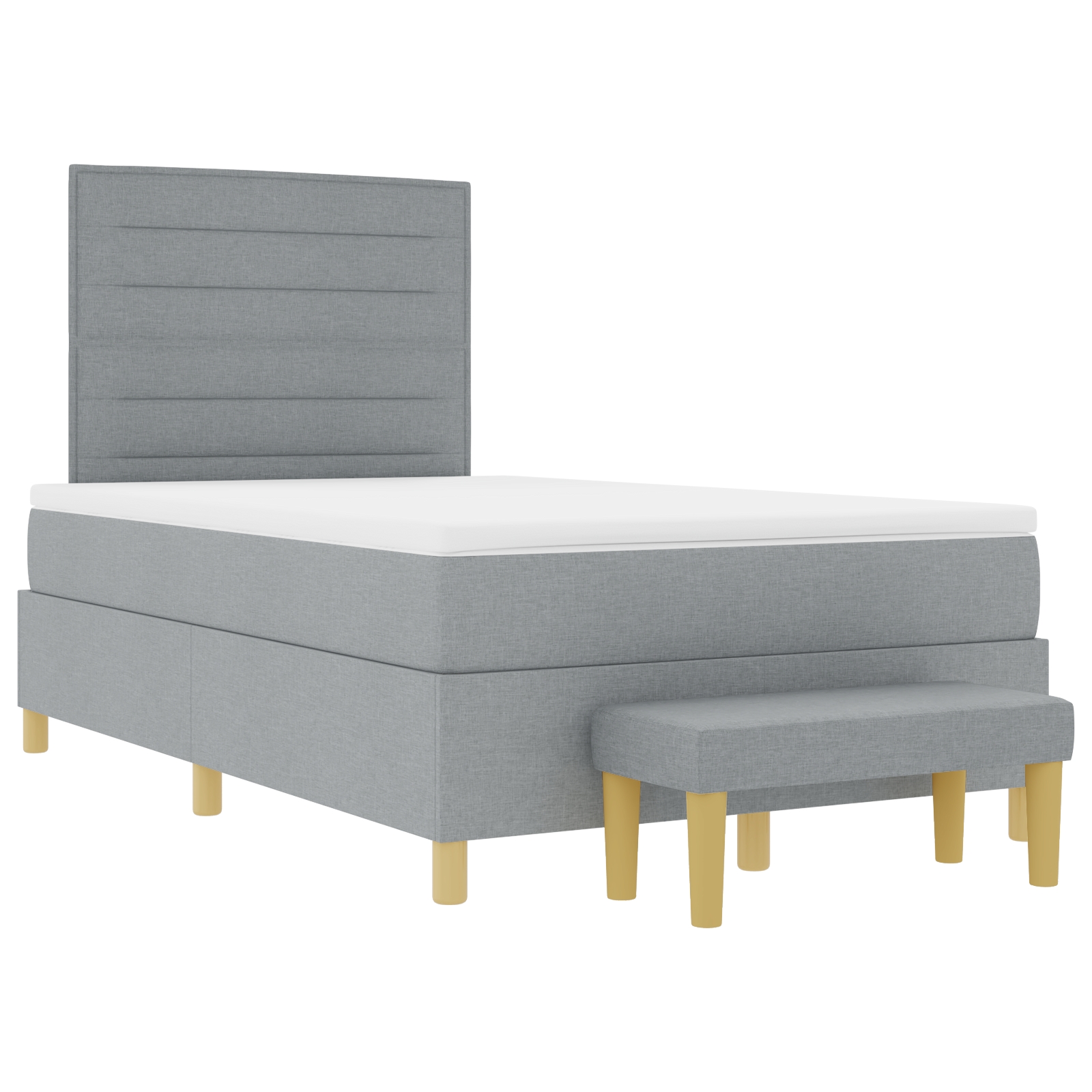 Dieses Boxspringbett verbindet Komfort und Stil und ist eine tolle Wahl, um dein Schlafzimmer aufzupeppen. Mit trendiger hellgrauer Polsterung und einem stabilen Holzrahmen ist es nicht nur ein Bett, sondern ein echter Hingucker, der Eleganz und Ruhe in deinen Raum bringt und bequem Platz für zwei Erwachsene bietet. Bequemer Schlaf: Die integrierte Matratze und die leichte Schaum-Schicht bieten tollen Halt für einen erholsamen Schlaf. Das leichte Design macht es einfach, das Bett zu bewegen, was Flexibilität in deinen Raum bringt. Robuste Bauweise: Das Bett hat einen stabilen Holzrahmen, der für Langlebigkeit sorgt. Du kannst entspannt sein, denn es bietet ein sicheres Fundament für täglichen Gebrauch. Moderne Ästhetik: Die hellgraue Stoffoberfläche gibt deinem Raum ein sauberes, zeitgemäßes Gefühl. Kombiniere es mit deiner Lieblingsbettwäsche und kreiere eine gemütliche Schlafzone. Praktische Bank: Die mitgelieferte Bank kann zum Sitzen und als praktische Aufbewahrung für Bettwäsche oder persönliche Sachen verwendet werden. So ist sie eine tolle Ergänzung für jedes Schlafzimmer. Einfache Pflege: Der schmutzresistente Stoff sorgt dafür, dass die Reinigung unkompliziert ist, damit dein Bett frisch und schick bleibt, ohne viel Aufwand.