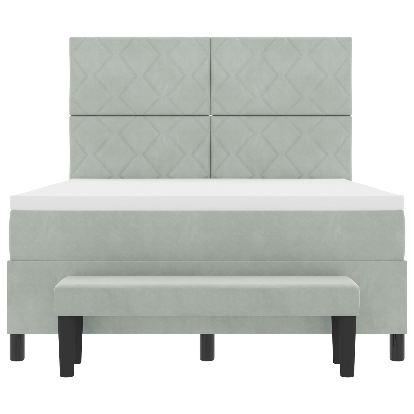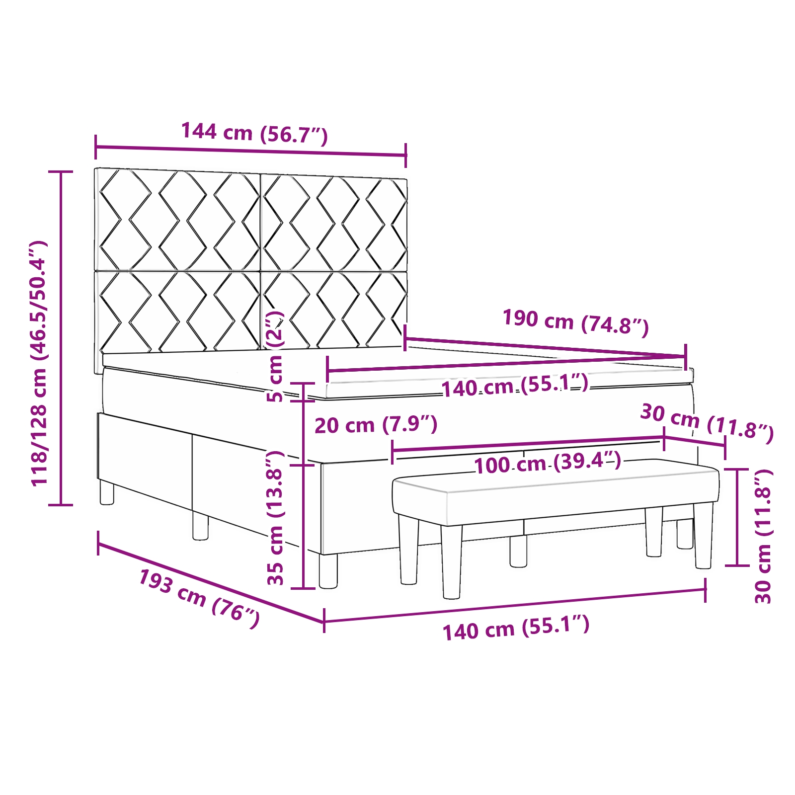 Dieses coole Boxspringbett ist eine tolle Schlaflösung, perfekt für Leute, die Komfort und Stil wollen. Der weiche hellgraue Samt und das trendige Diamantblockmuster sehen nicht nur gut aus, sondern schaffen auch eine entspannte Schlafumgebung. Ästhetischer Reiz: Die Kombination aus hellgrauem Samt und einem einzigartigen Diamantblockmuster verleiht jedem Raum einen Hauch von Glamour. Unterstützender Komfort: Die Schaumstoffmatratze und der Topper sorgen dafür, dass du gemütlich und unterstützend schläfst. Funktionales Design: Die passende Bank bietet zusätzlichen Platz für deine Klamotten. Einfacher Aufbau: Der Aufbau ist simpel; du brauchst nur einen Schraubendreher, das schafft jeder. Platzsparend: Mit 140 x 190 cm ist es ideal für verschiedene Räume und bietet Platz für bis zu 2 Erwachsene.
