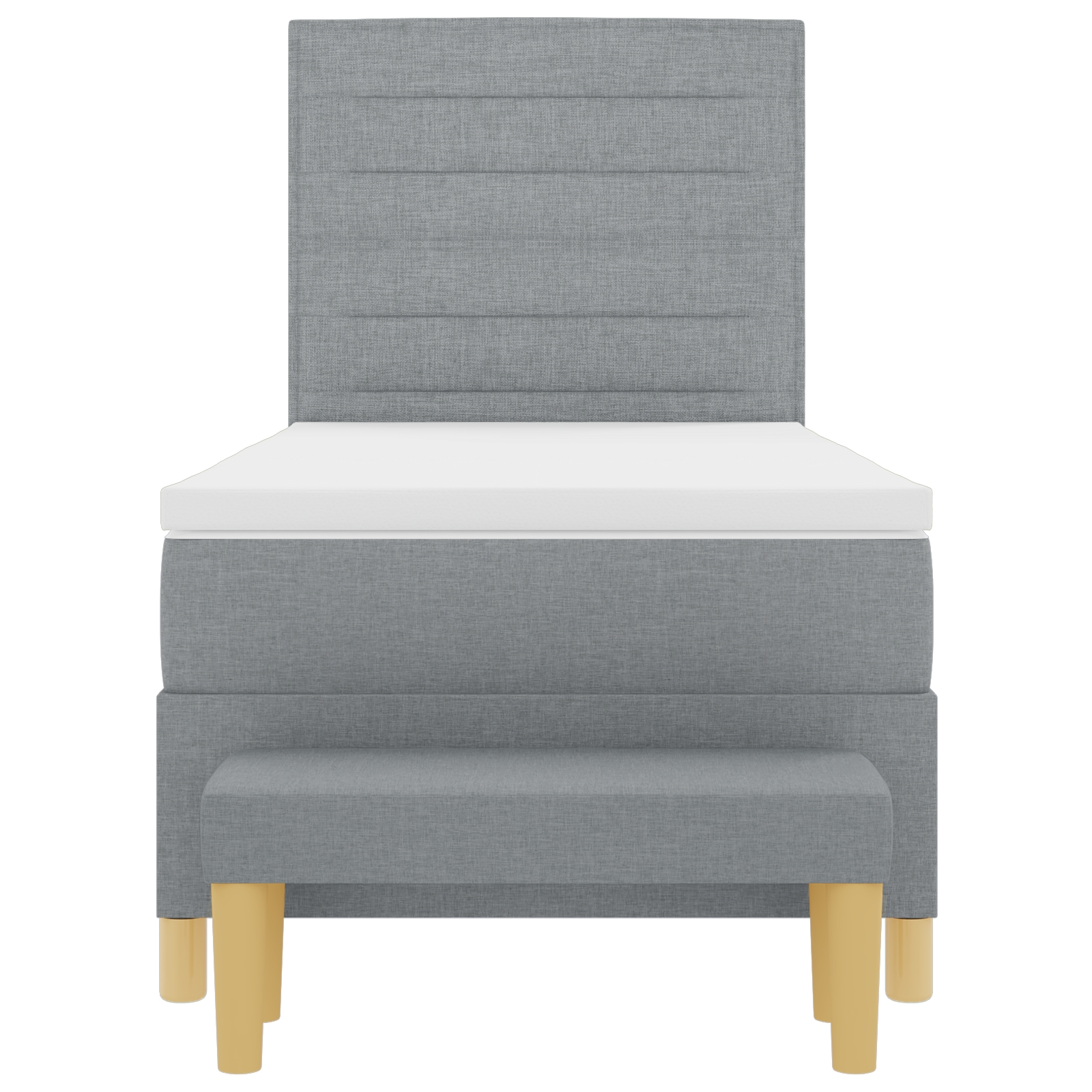 Dieses Boxspringbett bietet dir Komfort und Stil und ist eine tolle Ergänzung, wenn du dein Schlafzimmer aufpeppen möchtest. Die schicke hellgraue Polsterung und der stabile Holzrahmen machen es zum Hingucker, der Eleganz und Ruhe in den Raum bringt. Ideal für einen einzelnen Erwachsenen. Komfortabler Nachtschlaf: Die eingebaute Matratze und die Schaumstoffoberfläche geben dir exzellente Unterstützung, damit du erholsam schlafen kannst. Leicht umzustellen in deinem Raum. Robuste Konstruktion: Hergestellt aus starkem Holzrahmen für Langlebigkeit. Stabile Basis für den täglichen Gebrauch. Moderner Look: Das hellgraue Stofffinish schafft ein frisches und modernes Ambiente für dein Zimmer. Kombiniere es mit deiner Lieblingsbettwäsche für eine gemütliche Schlafzone. Funktionale Bank: Die enthaltene Bank dient gleich zwei Zwecken; zum Sitzen und als Stauraum für Bettzeug oder persönliche Sachen - eine clevere Wahl für jedes Schlafzimmer. Einfache Pflege: Der fleckenresistente Stoff macht die Reinigung super einfach und hilft dir, dein Bett frisch und stylisch zu halten.