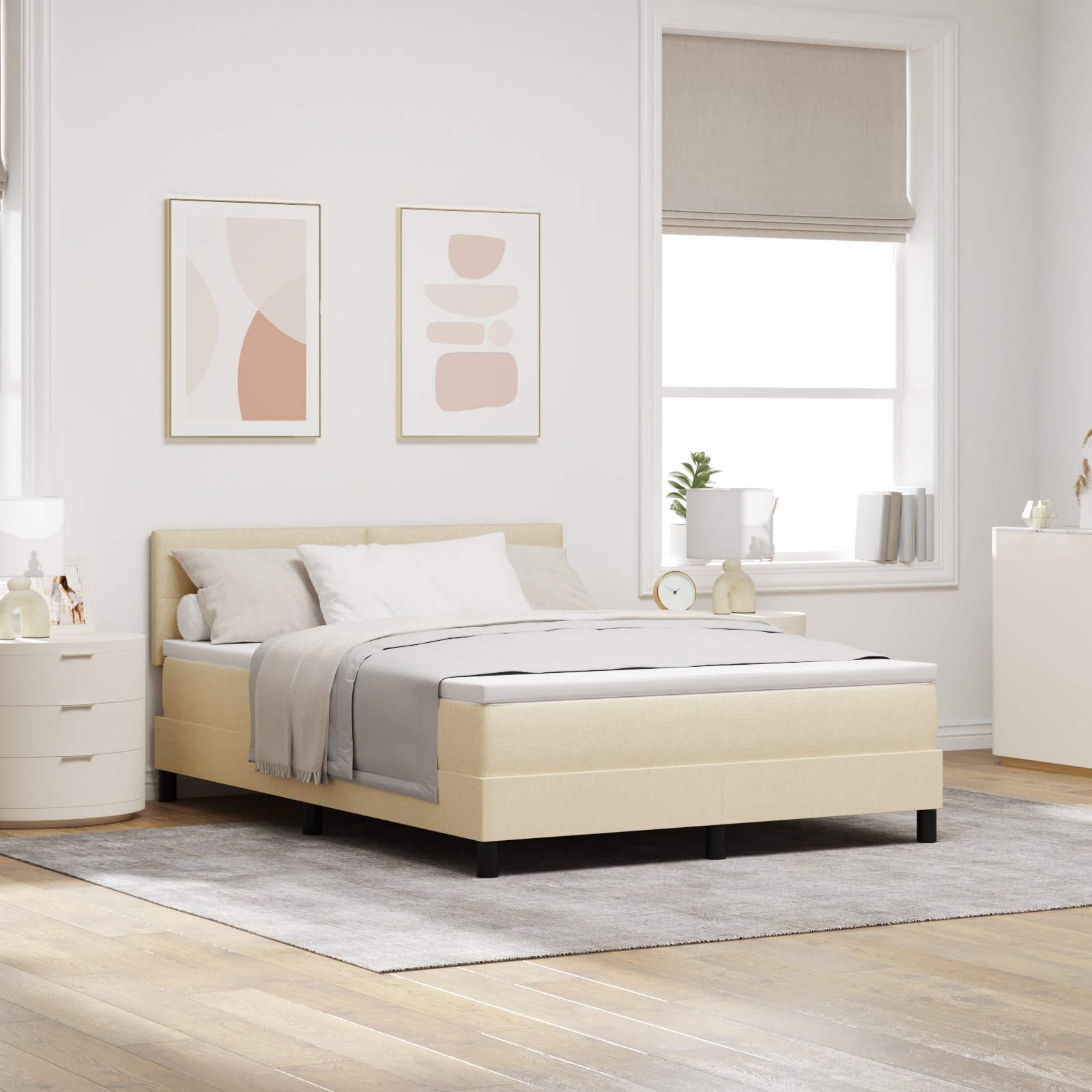 Dieses Boxspringbett kombiniert modernen Stil mit Praktikabilität und ist perfekt für gemütliche Schlafzimmer oder Gästezimmer. Der beigefarbene Stoff und das passende Kopfteil sorgen für eine entspannte Atmosphäre, während es sicherstellt, dass du gut schläfst. Minimalistisches Design: Dieses Bett sieht toll aus in modernen Interieurs und bringt Stil, ohne den Raum zu überladen. Sein simples Design passt zu verschiedenen Einrichtungsstilen und erschafft eine ruhige Atmosphäre. Bequeme Bettwäsche: Die Matratze und der Topper bieten gemütlichen Komfort und garantieren einen erholsamen Schlaf. Genieße den Halt und die Weichheit, die sich deinem Körper anpasst und individuellen Komfort bietet. Stabiler Rahmen: Hergestellt aus solidem Holz, kann der robuste Rahmen bis zu 200 kg tragen, was seine Langlebigkeit steigert und Schäden verringert. Vielseitig einsetzbar: Ideal für Schlafzimmer oder Gästezimmer, passt dieses Bett für zwei und ist perfekt zum Entspannen. Für Erwachsene gemacht, bietet es den Komfort, den du in jedem Raum brauchst. Einfache Pflege: Die Reinigung ist super easy; wisch einfach den Stoff mit einem feuchten Tuch ab, um Staub und Flecken zu entfernen. Regelmäßige Pflege hält es lange frisch.