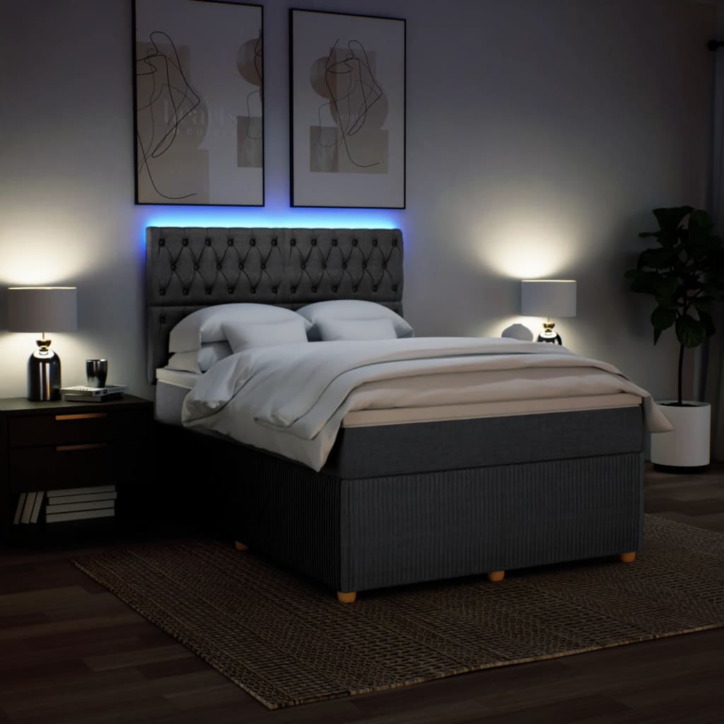 Mit diesem Boxspringbett genießt du eine erholsame Nachtruhe! Es sorgt für maximale Entspannung und einen angenehmen Schlaf. Weiches und strapazierfähiges Material: Das Polyestergewebe vereint Weichheit, Atmungsaktivität und Strapazierfähigkeit, sodass du ultimativen Komfort und Gemütlichkeit im Bett erlebst. Taschenfederkernmatratze: Diese Matratze hat einzelne Taschenfedern, die unabhängig voneinander arbeiten. Somit bietet sie dir optimalen Halt, indem sie auf Druckstellen in jedem Bereich unabhängig reagieren. Diese Konstruktion verhindert das "Zusammenrollen" und reduziert die Bewegungsübertragung im Vergleich zu alten Federkernmatratzen. Jede Taschenfeder stützt die Körper-Druckstellen individuell. LED-Beleuchtung für ein angenehmes Ambiente: Dieses Bett verfügt über LED-Leuchten, die einfach eingestellt werden können, um eine persönliche Lichtshow zu kreieren. Du kannst die Modi, Farben und Helligkeit anpassen, um das Ambiente deines Innenraums zu verbessern. Höhenverstellbares Kopfteil: Das Kopfteil ist nach Wunsch höhenverstellbar. Komfortable Matratzenauflage: Die Auflage verbessert den Halt und den Komfort mit ihrer weichen, atmungsaktiven Oberfläche und verlängert gleichzeitig die Lebensdauer deiner Matratze. Der abnehmbare Bezug ermöglicht ein einfaches Waschen, was die Pflege der Matratze zum Kinderspiel macht. Gut zu wissen: Das Produkt verfügt über einen USB-Anschluss, für den eine zertifizierte 5V-USB-Stromquelle erforderlich ist (nicht im Lieferumfang enthalten). Aus hygienischen Gründen kann die Matratze nicht zurückgegeben werden, wenn die Verpackung entfernt oder geöffnet wurde. Nur der Teil mit dem Symbol kann geschnitten werden und nur der Teil mit dem USB funktioniert auch weiterhin.