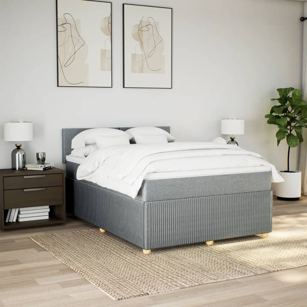 Boxspringbett mit Matratze Hellgrau 140x190 cm Stoff