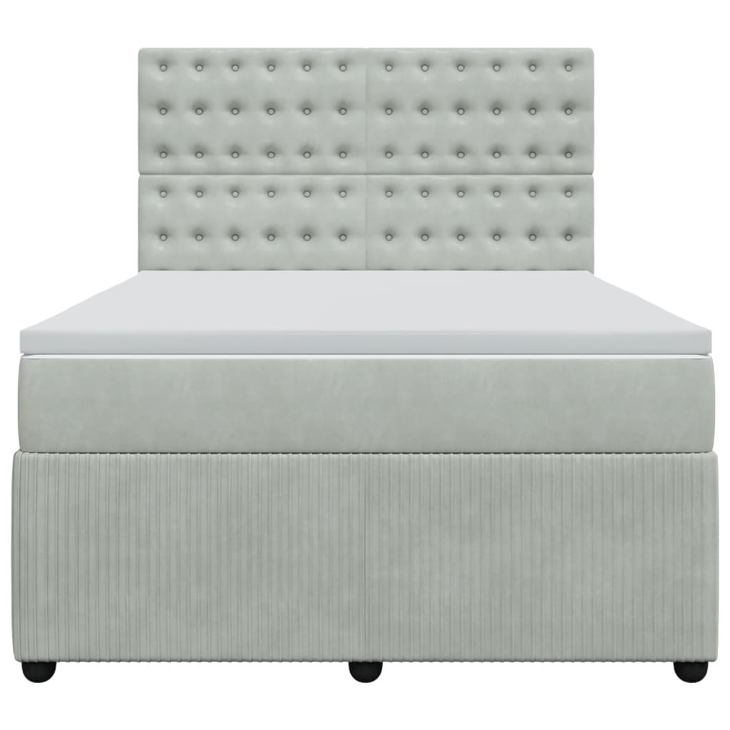 Mit diesem Boxspringbett genießt du eine erholsame Nachtruhe! Es sorgt für maximale Entspannung und einen angenehmen Schlaf. Weiches und komfortables Material: Der Samtstoff hat eine weiche und sanfte Oberfläche, die sich angenehm auf der Haut anfühlt und höchsten Komfort bietet. Taschenfederkernmatratze: Diese Matratze hat einzelne Taschenfedern, die unabhängig voneinander arbeiten. Somit bietet sie dir optimalen Halt, indem sie auf Druckstellen in jedem Bereich unabhängig reagieren. Diese Konstruktion verhindert das "Zusammenrollen" und reduziert die Bewegungsübertragung im Vergleich zu alten Federkernmatratzen. Jede Taschenfeder stützt die Körper-Druckstellen individuell. LED-Beleuchtung für ein angenehmes Ambiente: Dieses Bett verfügt über LED-Leuchten, die einfach eingestellt werden können, um eine persönliche Lichtshow zu kreieren. Du kannst die Modi, Farben und Helligkeit anpassen, um das Ambiente deines Innenraums zu verbessern. Höhenverstellbares Kopfteil: Das Kopfteil ist nach Wunsch höhenverstellbar. Komfortable Matratzenauflage: Die Auflage verbessert den Halt und den Komfort mit ihrer weichen, atmungsaktiven Oberfläche und verlängert gleichzeitig die Lebensdauer deiner Matratze. Der abnehmbare Bezug ermöglicht ein einfaches Waschen, was die Pflege der Matratze zum Kinderspiel macht. Gut zu wissen: Das Produkt verfügt über einen USB-Anschluss, für den eine zertifizierte 5V-USB-Stromquelle erforderlich ist (nicht im Lieferumfang enthalten). Aus hygienischen Gründen kann die Matratze nicht zurückgegeben werden, wenn die Verpackung entfernt oder geöffnet wurde. Nur der Teil mit dem Symbol kann geschnitten werden und nur der Teil mit dem USB funktioniert auch weiterhin.