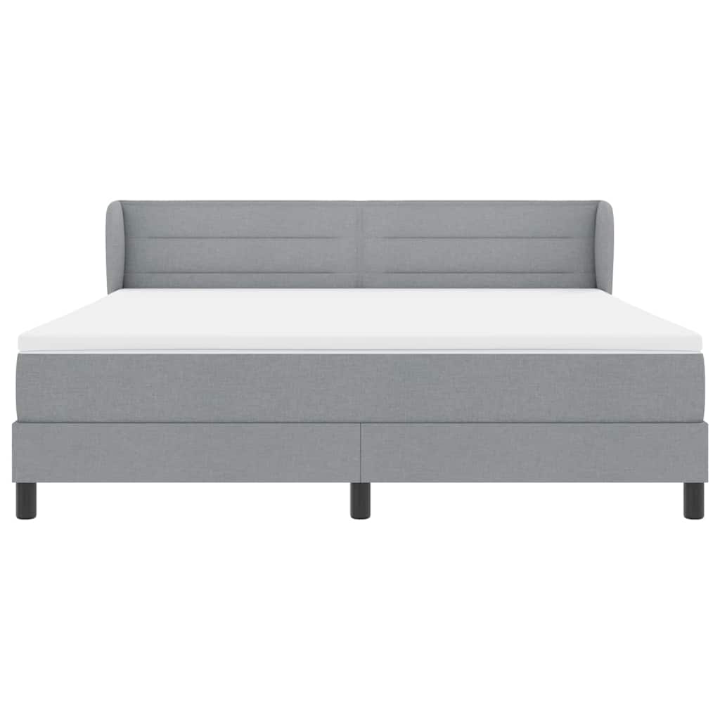 Dieses moderne Kingsize-Bettgestell hat einen eleganten Look und passt zu verschiedenen Schlafzimmerstilen. Es ist aus robustem Stoff gefertigt, der nicht nur den Stil deines Zimmers aufwertet, sondern auch guten Schlaf ermöglicht. Dank der stabilen Lattenkonstruktion unterstützt es die Matratze und schafft eine ruhige Atmosphäre – perfekt für Paare oder jeden, der die Schlafqualität verbessern will. Robustes Material: Der 100% Polyesterstoff ist atmungsaktiv für bequemen Gebrauch und pflegeleicht, was die Atmosphäre in deinem Schlafzimmer verbessert. Sperrholz-Latten: Glatte Sperrholzlatten bieten tolle Unterstützung und halten die Matratze fest an ihrem Platz, sodass du ohne Sorgen entspannen kannst. Stabiles Design: Mit vier starken Beinen garantiert das Gestell tolle Stabilität und Unterstützung, ideal für eine ruhige Nacht. Attraktives Finish: Die hellgraue Farbe und der moderne Look schaffen eine warme und einladende Atmosphäre, die gut zu verschiedenen Schlafzimmerdesigns passt. Montage enthalten: Jedes Bettgestell kommt mit einem klaren Anleitungsheft, sodass du es schnell aufbauen kannst und dein Schlafzimmer bereit ist.