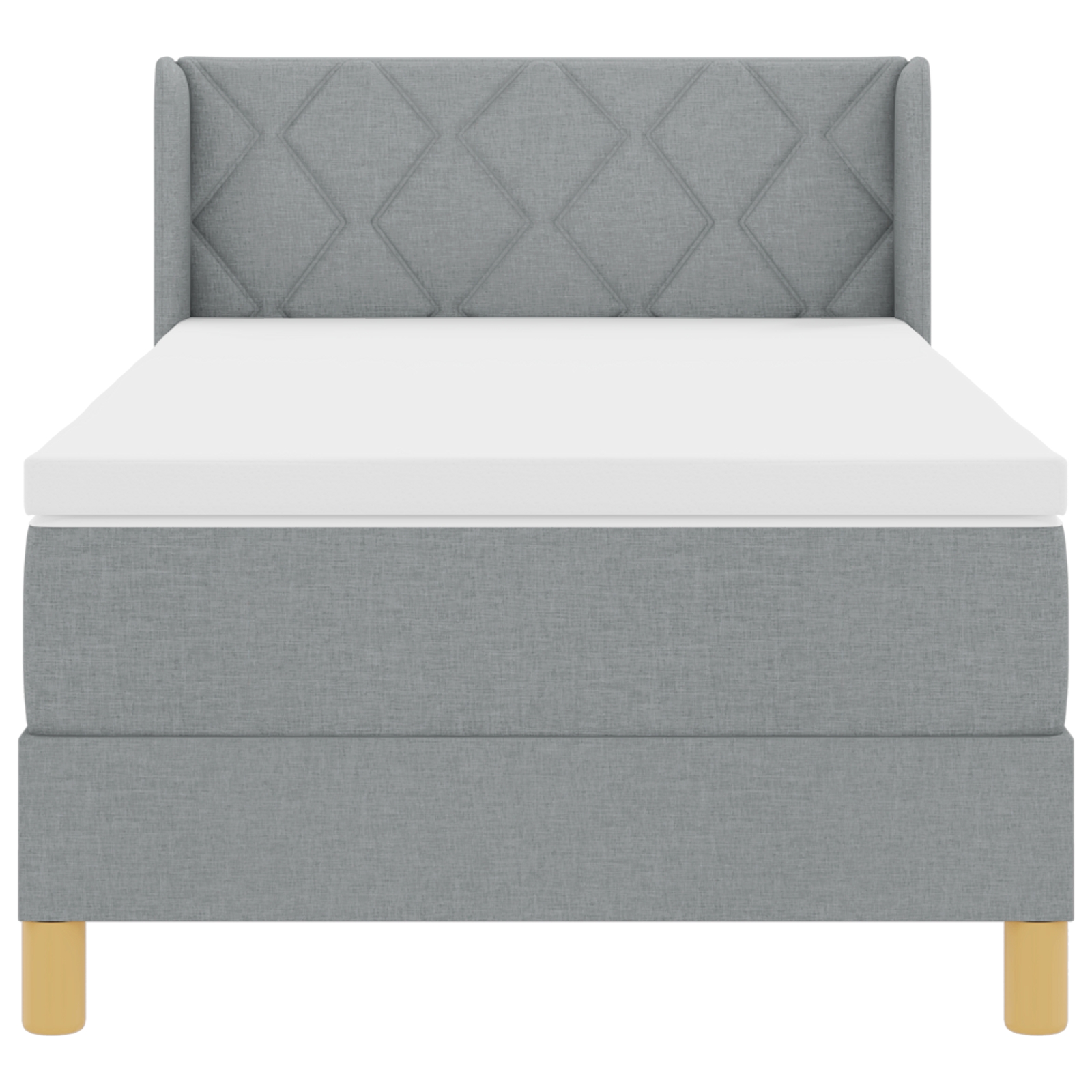 Boxspringbett mit Matratze Hellgrau 90x200 cm Stoff, Kopfteil mit Diamantblockdesign Hellgrau 90 cm Stoff