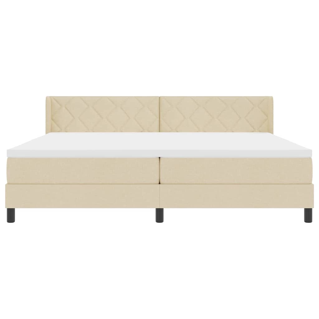 Dieses Boxspringbett verbindet Komfort und Stil und bringt einen schicken Creme-Look in dein Schlafzimmer, der zu allen Deko-Stilen passt. Das höhenverstellbare Kopfteil hilft dir, die beste Schlafposition zu finden und sieht dazu auch noch gut aus. Modernes Design: Das schicke Diamantblockmuster zieht alle Blicke auf sich und passt zu jedem Schlafzimmer-Stil. Höhenverstellbar: Stell das Kopfteil einfach so ein, dass es für dich bequem ist. Abnehmbarer Bezug: Mit einem maschinenwaschbaren Bezug bleibt dein Schlafbereich sauber und pflegeleicht. Haltbare Materialien: Gefertigt aus hochdichtem Schaumstoff und hautfreundlichem synthetischen Stoff, ist dieses Bett super langlebig. Großzügige Größe: Mit 200 x 200 cm ist es genau das richtige für größere Schlafzimmer, damit du immer bequem liegen kann.