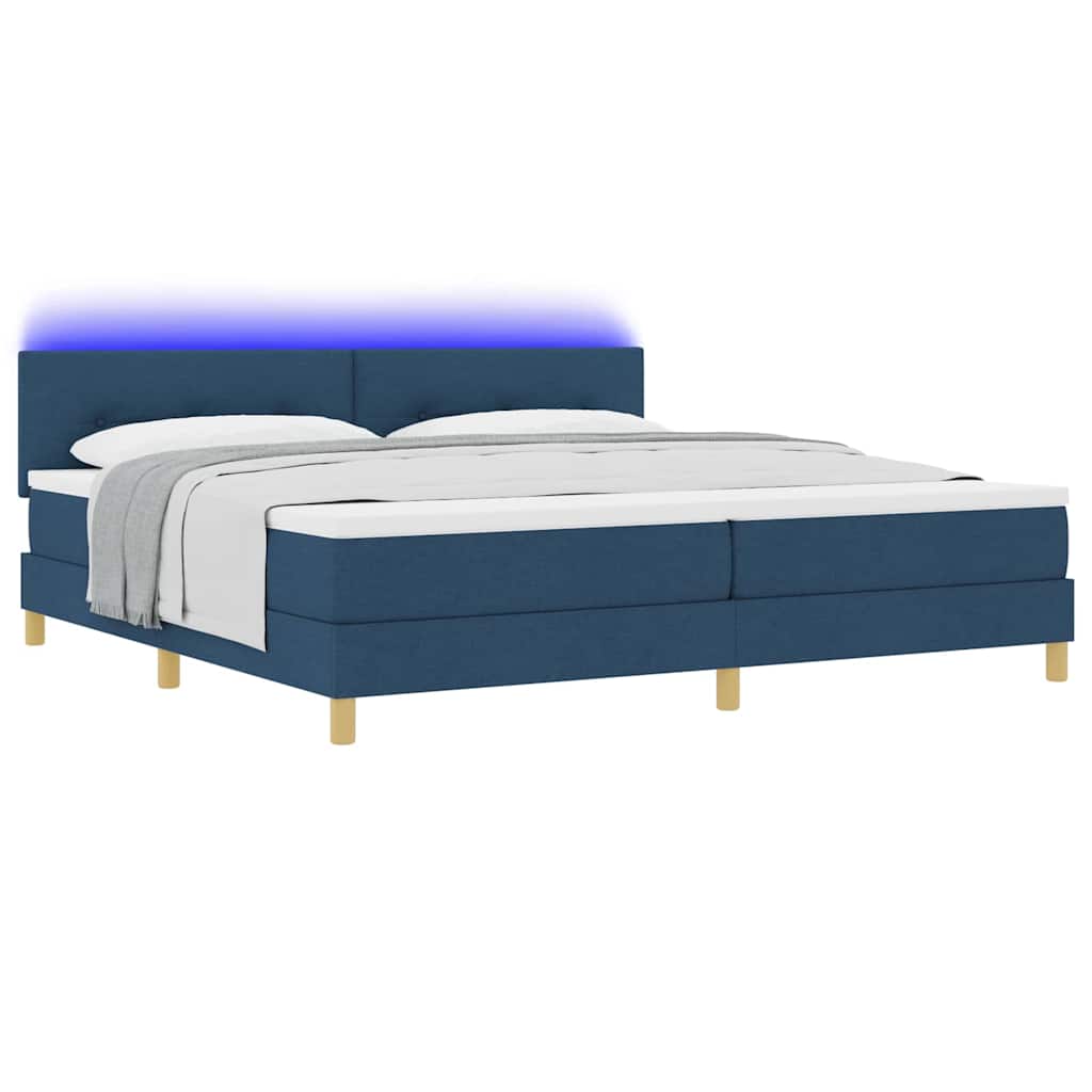 Dieses großzügige Boxspringbett ist ideal für Paare und bietet großen Komfort und einen stylischen Look. Mit einem modernen Stoff-Finish und integrierten LED-Lichtern wird dein Schlafzimmer zu einem entspannten Rückzugsort und verbindet Stil mit Funktionalität. Integrierter LED-Streifen: Dieses coole Design hat eingebaute LED-Lichter, die Stimmung in deinem Schlafzimmer machen und einen tollen Blickfang schaffen. Atmungsaktives Material: Aus gemütlichem Polyesterstoff gefertigt, bleibt das Bett die ganze Nacht über frisch für einen guten Schlaf. Smartes Design: Die rechteckige Form und die blaue Oberfläche kombinieren modernen Stil und passen in jede Schlafzimmeratmosphäre. Einfache Pflege: Es ist wirklich einfach, es sauber zu halten – einfach mit einem trockenen Tuch abwischen, damit du mehr Zeit zum Entspannen hast. Stabil und zuverlässig: Hergestellt mit starken Holzbeinen und einem soliden Rahmen, verspricht das Bett Langlebigkeit, ideal für alle, die nach stabilen Möbeln suchen.