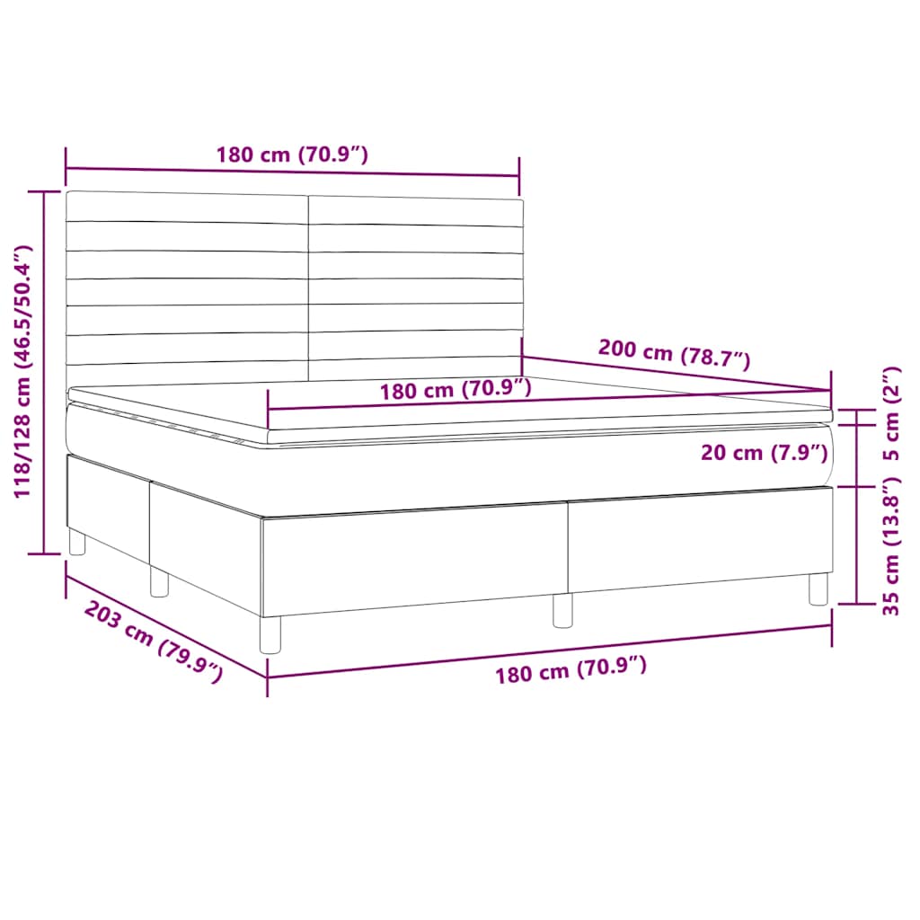 Boxspringbett mit Matratze & LED Dunkelbraun 180x200 cm Stoff