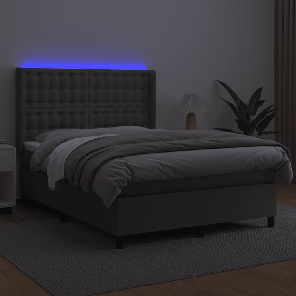 Boxspringbett mit Matratze & LED Grau 140x190 cm Kunstleder