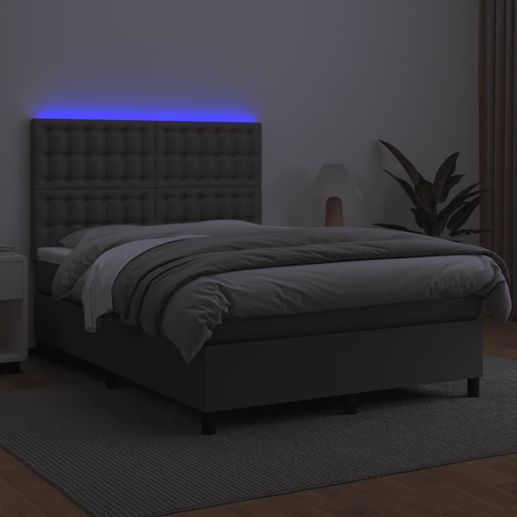 Nutze dieses Boxspringbett mit Matratze und LED für einen erholsamen Schlaf! Es wird der Mittelpunkt deines Schlafzimmers. Langlebiges Kunstleder: Hochwertiges Kunstleder ist ein äußerst langlebiges Material. Es ist schmutzabweisend und lässt sich mit einem feuchten Tuch einfach reinigen. Durch die glatte Oberfläche weist es die Schönheit von Echtleder und einen luxuriösen Look auf.Praktisches Kopfteil: Das Bett-Kopfteil ist nach Belieben höhenverstellbar. Es ist eine hervorragende Rückenlehne, während du im Bett sitzt, liest oder fern siehst.Bunter LED-Streifen: Die farbenfrohen LED-Leuchten erzeugen Verspieltheit in der Dunkelheit!Taschenfederkernmatratze: Die eingebaute Einzeltaschenfederkernmatratze zeichnet sich durch sehr hohe Qualität aus und gewährleistet gleichzeitig eine hohe Strapazierfähigkeit und Anpassungsfähigkeit. Sie absorbiert effektiv die durch das Werfen und Drehen verursachten Geräusche und Stöße.Hautfreundliche Matratzenauflage: Der Matratzenschoner ist mit einem strapazierfähigen sowie hautfreundlichen Stoffbezug versehen und fühlt sich daher weich und angenehm an. Hinweis:Aus hygienischen Gründen kann die Matratze nicht zurückgegeben werden, wenn die Verpackung entfernt oder geöffnet wurde.Nur der Teil mit dem Symbol kann geschnitten werden und nur der Teil mit dem USB funktioniert auch weiterhin.Jedes Produkt wird mit einer Montageanleitung in der Verpackung für einen einfachen Zusammenbau geliefert.Das Produkt verfügt über einen USB-Anschluss, aber die zertifizierte 5-V-USB-Stromquelle ist nicht im Lieferumfang enthalten.