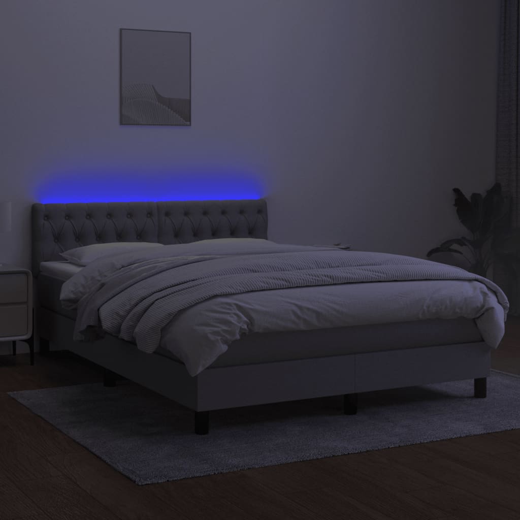 Nutze dieses Boxspringbett mit Matratze und LED für einen erholsamen Schlaf! Es wird der Mittelpunkt deines Schlafzimmers. Strapazierfähiger Stoff: Der Stoff weist eine schlichte und saubere Optik auf und ist außerdem atmungsaktiv und langlebig.Praktisches Kopfteil: Das Bett-Kopfteil ist nach Belieben höhenverstellbar. Es ist eine hervorragende Rückenlehne, während du im Bett sitzt, liest oder fern siehst.Bunter LED-Streifen: Die farbenfrohen LED-Leuchten erzeugen Verspieltheit in der Dunkelheit!Taschenfederkernmatratze: Die eingebaute Einzeltaschenfederkernmatratze zeichnet sich durch sehr hohe Qualität aus und gewährleistet gleichzeitig eine hohe Strapazierfähigkeit und Anpassungsfähigkeit. Sie absorbiert effektiv die durch das Werfen und Drehen verursachten Geräusche und Stöße.Hautfreundliche Matratzenauflage: Der Matratzenschoner ist mit einem strapazierfähigen sowie hautfreundlichen Stoffbezug versehen und fühlt sich daher weich und angenehm an. Hinweis:Aus hygienischen Gründen kann die Matratze nicht zurückgegeben werden, wenn die Verpackung entfernt oder geöffnet wurde.Jedes Produkt wird mit einer Montageanleitung in der Verpackung für eine einfache Montage geliefert.Nur der Teil mit dem Symbol kann geschnitten werden und nur der Teil mit dem USB funktioniert auch weiterhin.Das Produkt verfügt über einen USB-Anschluss, aber die zertifizierte 5-V-USB-Stromquelle ist nicht im Lieferumfang enthalten.