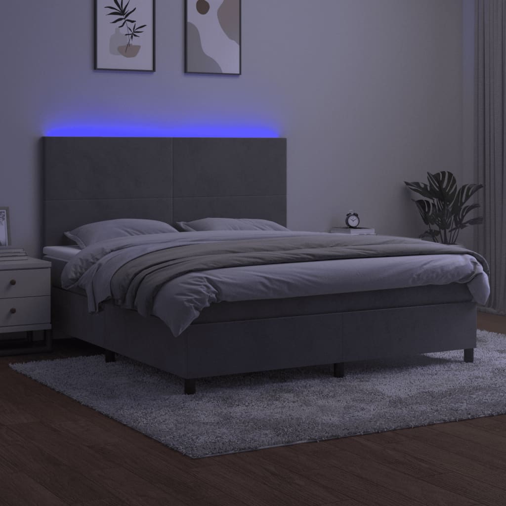 Nutze dieses Boxspringbett mit Matratze und LED für einen erholsamen Schlaf! Es wird der Mittelpunkt deines Schlafzimmers. Weicher Samt: Samt ist ein weicher, luxuriöser Stoff, der sich durch seinen dichten Flor aus gleichmäßig geschnittenen Fasern auszeichnet, die einen glatten Flor haben. Samt fühlt sich unverwechselbar weich an und ist angenehm zu berühren.Praktisches Kopfteil: Das Bett-Kopfteil ist nach Belieben höhenverstellbar. Es ist eine hervorragende Rückenlehne, während du im Bett sitzt, liest oder fern siehst.Bunter LED-Streifen: Die farbenfrohen LED-Leuchten erzeugen Verspieltheit in der Dunkelheit!Taschenfederkernmatratze: Die eingebaute Einzeltaschenfederkernmatratze zeichnet sich durch sehr hohe Qualität aus und gewährleistet gleichzeitig eine hohe Strapazierfähigkeit und Anpassungsfähigkeit. Sie absorbiert effektiv die durch das Werfen und Drehen verursachten Geräusche und Stöße.Hautfreundliche Matratzenauflage: Der Matratzenschoner ist mit einem strapazierfähigen sowie hautfreundlichen Stoffbezug versehen und fühlt sich daher weich und angenehm an. Hinweis:Aus hygienischen Gründen kann die Matratze nicht zurückgegeben werden, wenn die Verpackung entfernt oder geöffnet wurde.Nur der Teil mit dem Symbol kann geschnitten werden und nur der Teil mit dem USB funktioniert auch weiterhin.Jedes Produkt wird mit einer Montageanleitung in der Verpackung für einen einfachen Zusammenbau geliefert.Das Produkt verfügt über einen USB-Anschluss, aber die zertifizierte 5-V-USB-Stromquelle ist nicht im Lieferumfang enthalten.