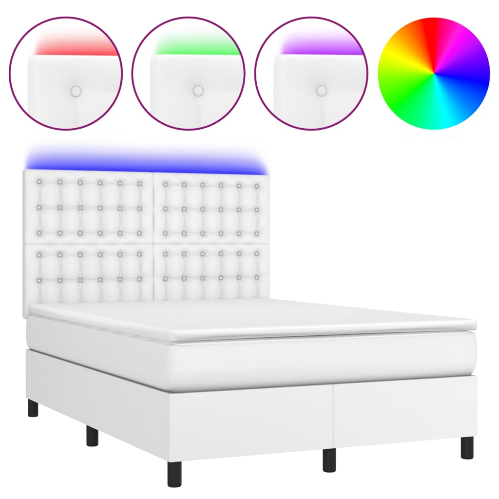 Nutze dieses Boxspringbett mit Matratze und LED für einen erholsamen Schlaf! Es wird der Mittelpunkt deines Schlafzimmers. Langlebiges Kunstleder: Hochwertiges Kunstleder ist ein äußerst langlebiges Material. Es ist schmutzabweisend und lässt sich mit einem feuchten Tuch einfach reinigen. Durch die glatte Oberfläche weist es die Schönheit von Echtleder und einen luxuriösen Look auf.Praktisches Kopfteil: Das Bett-Kopfteil ist nach Belieben höhenverstellbar. Es ist eine hervorragende Rückenlehne, während du im Bett sitzt, liest oder fern siehst.Bunter LED-Streifen: Die farbenfrohen LED-Leuchten erzeugen Verspieltheit in der Dunkelheit!Taschenfederkernmatratze: Die eingebaute Einzeltaschenfederkernmatratze zeichnet sich durch sehr hohe Qualität aus und gewährleistet gleichzeitig eine hohe Strapazierfähigkeit und Anpassungsfähigkeit. Sie absorbiert effektiv die durch das Werfen und Drehen verursachten Geräusche und Stöße.Hautfreundliche Matratzenauflage: Der Matratzenschoner ist mit einem strapazierfähigen sowie hautfreundlichen Stoffbezug versehen und fühlt sich daher weich und angenehm an. Hinweis:Aus hygienischen Gründen kann die Matratze nicht zurückgegeben werden, wenn die Verpackung entfernt oder geöffnet wurde.Nur der Teil mit dem Symbol kann geschnitten werden und nur der Teil mit dem USB funktioniert auch weiterhin.Jedes Produkt wird mit einer Montageanleitung in der Verpackung für einen einfachen Zusammenbau geliefert.Das Produkt verfügt über einen USB-Anschluss, aber die zertifizierte 5-V-USB-Stromquelle ist nicht im Lieferumfang enthalten.