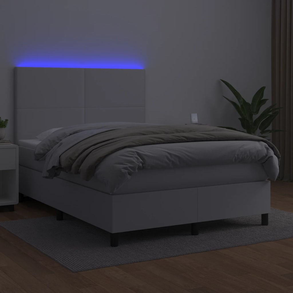 Nutze dieses Boxspringbett mit Matratze und LED für einen erholsamen Schlaf! Es wird der Mittelpunkt deines Schlafzimmers. Langlebiges Kunstleder: Hochwertiges Kunstleder ist ein äußerst langlebiges Material. Es ist schmutzabweisend und lässt sich mit einem feuchten Tuch einfach reinigen. Durch die glatte Oberfläche weist es die Schönheit von Echtleder und einen luxuriösen Look auf.Praktisches Kopfteil: Das Bett-Kopfteil ist nach Belieben höhenverstellbar. Es ist eine hervorragende Rückenlehne, während du im Bett sitzt, liest oder fern siehst.Bunter LED-Streifen: Die farbenfrohen LED-Leuchten erzeugen Verspieltheit in der Dunkelheit!Taschenfederkernmatratze: Die eingebaute Einzeltaschenfederkernmatratze zeichnet sich durch sehr hohe Qualität aus und gewährleistet gleichzeitig eine hohe Strapazierfähigkeit und Anpassungsfähigkeit. Sie absorbiert effektiv die durch das Werfen und Drehen verursachten Geräusche und Stöße.Hautfreundliche Matratzenauflage: Der Matratzenschoner ist mit einem strapazierfähigen sowie hautfreundlichen Stoffbezug versehen und fühlt sich daher weich und angenehm an. Hinweis:Aus hygienischen Gründen kann die Matratze nicht zurückgegeben werden, wenn die Verpackung entfernt oder geöffnet wurde.Nur der Teil mit dem Symbol kann geschnitten werden und nur der Teil mit dem USB funktioniert auch weiterhin.Jedes Produkt wird mit einer Montageanleitung in der Verpackung für einen einfachen Zusammenbau geliefert.Das Produkt verfügt über einen USB-Anschluss, aber die zertifizierte 5-V-USB-Stromquelle ist nicht im Lieferumfang enthalten.