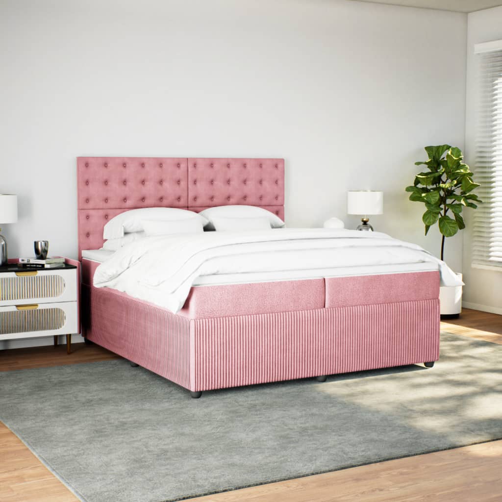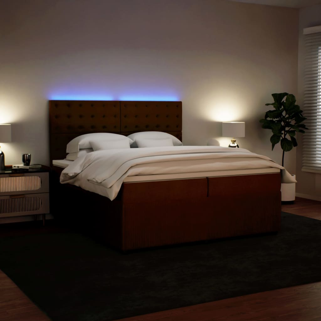 Mit diesem Boxspringbett genießt du eine erholsame Nachtruhe! Es sorgt für maximale Entspannung und einen angenehmen Schlaf. Weiches und komfortables Material: Der Samtstoff hat eine weiche und sanfte Oberfläche, die sich angenehm auf der Haut anfühlt und höchsten Komfort bietet. Taschenfederkernmatratze: Diese Matratze hat einzelne Taschenfedern, die unabhängig voneinander arbeiten. Somit bietet sie dir optimalen Halt, indem sie auf Druckstellen in jedem Bereich unabhängig reagieren. Diese Konstruktion verhindert das "Zusammenrollen" und reduziert die Bewegungsübertragung im Vergleich zu alten Federkernmatratzen. Jede Taschenfeder stützt die Körper-Druckstellen individuell. LED-Beleuchtung für ein angenehmes Ambiente: Dieses Bett verfügt über LED-Leuchten, die einfach eingestellt werden können, um eine persönliche Lichtshow zu kreieren. Du kannst die Modi, Farben und Helligkeit anpassen, um das Ambiente deines Innenraums zu verbessern. Höhenverstellbares Kopfteil: Das Kopfteil ist nach Wunsch höhenverstellbar. Komfortable Matratzenauflage: Die Auflage verbessert den Halt und den Komfort mit ihrer weichen, atmungsaktiven Oberfläche und verlängert gleichzeitig die Lebensdauer deiner Matratze. Der abnehmbare Bezug ermöglicht ein einfaches Waschen, was die Pflege der Matratze zum Kinderspiel macht. Gut zu wissen: Das Produkt verfügt über einen USB-Anschluss, für den eine zertifizierte 5V-USB-Stromquelle erforderlich ist (nicht im Lieferumfang enthalten). Aus hygienischen Gründen kann die Matratze nicht zurückgegeben werden, wenn die Verpackung entfernt oder geöffnet wurde. Nur der Teil mit dem Symbol kann geschnitten werden und nur der Teil mit dem USB funktioniert auch weiterhin.