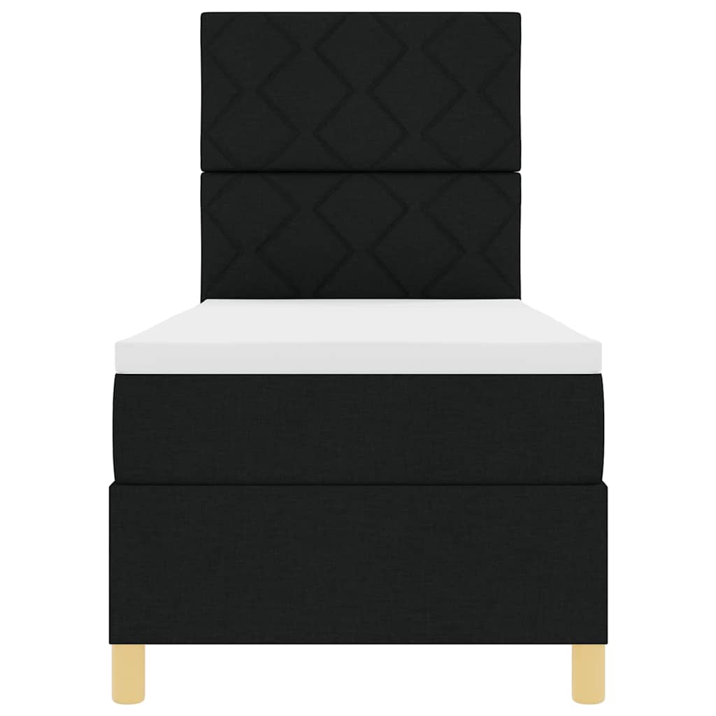 Dieses Boxspringbett mit Matratze sollte in keinem Schlafzimmer fehlen. Es ist für erstklassigen Komfort und einen modernen Look designed. Der elegante schwarze Stoff vereint Stil und Praktikabilität und macht deinen Raum sowohl einladend als auch schick. Bequeme Schlaf-Erfahrung: Das Bett hat eine hochwertige Matratze, die dir hilft, eine gute Schlafhaltung zu finden und untertützt dich für eine erholsame Nacht. Stell dir vor, du wachst erfrischt auf und bist bereit, den Tag zu rocken. Stylisches Design: Die moderne schwarze Oberfläche und das geometrische Diamantblock-Muster bringen einen Hauch von Eleganz und machen das Bett zu einem echten Hingucker in verschiedenen Einrichtungsstilen. Es verwandelt deinen Schlafbereich in eine stilvolle Oase. Einfache Montage: Dieses Bett kommt mit klaren Anleitungen, die es zwei Personen leicht machen, es ohne Profi schnell zusammenzubauen. Dein Raum in einen gemütlichen Rückzugsort zu verwandeln wird so super easy. Robuste Konstruktion: Das Bett ist für Langlebigkeit gemacht, mit einem stabilen Rahmen und hochwertigen Materialien, die Stabilität garantieren. Schlaf ohne Bedenken – dieses Bett ist für den täglichen Gebrauch gemacht. Kompakte Größe: Das Boxspringbett misst 80 x 200 cm und ist perfekt für kleinere Räume – eine super Lösung für Wohnungen oder Gästezimmer, ohne beim Komfort Abstriche zu machen.
