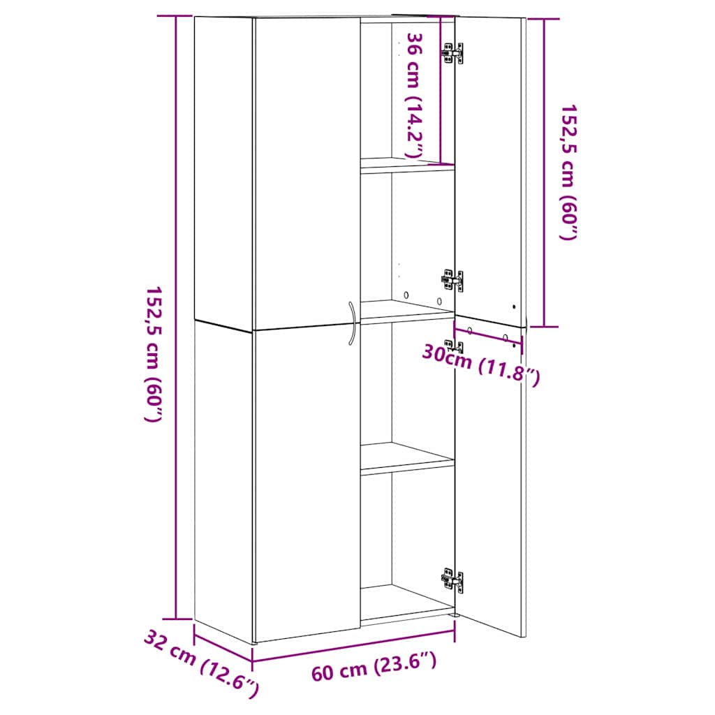 Dieser Büroschrank verbindet Funktionalität mit Stil und ist perfekt für alle, die ihr Zuhause organisieren wollen. Mit dem modernen Artisan Eiche-Finish fügt er sich gut in dein Zuhause oder Büro ein und sieht schick aus, während er deine Aufbewahrungsbedürfnisse erfüllt. Der Schrank ist auf Langlebigkeit ausgelegt und sorgt für Zuverlässigkeit, was ihn zur idealen Wahl für Zuhause und Büro macht. Das schlanke, moderne Design bringt Schwung in deine Einrichtung und bietet praktischen Stauraum. Mit drei Regalen bietet er Platz für Akten, Büromaterial und Deko und erfüllt diverse Organisationsbedürfnisse. Einfach aufzustellen, sodass du deinen Schrank ohne großen Aufwand nutzen kannst. Mit 60 x 32 x 153 cm passt er gut in enge Räume und bietet gleichzeitig großzügigen Stauraum für all deine Essentials.