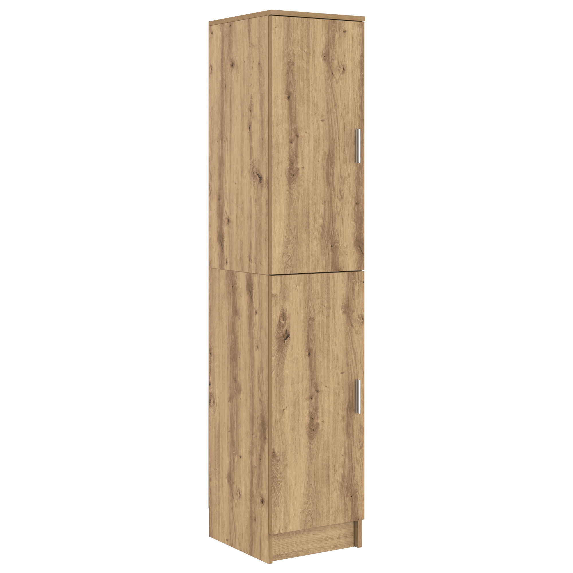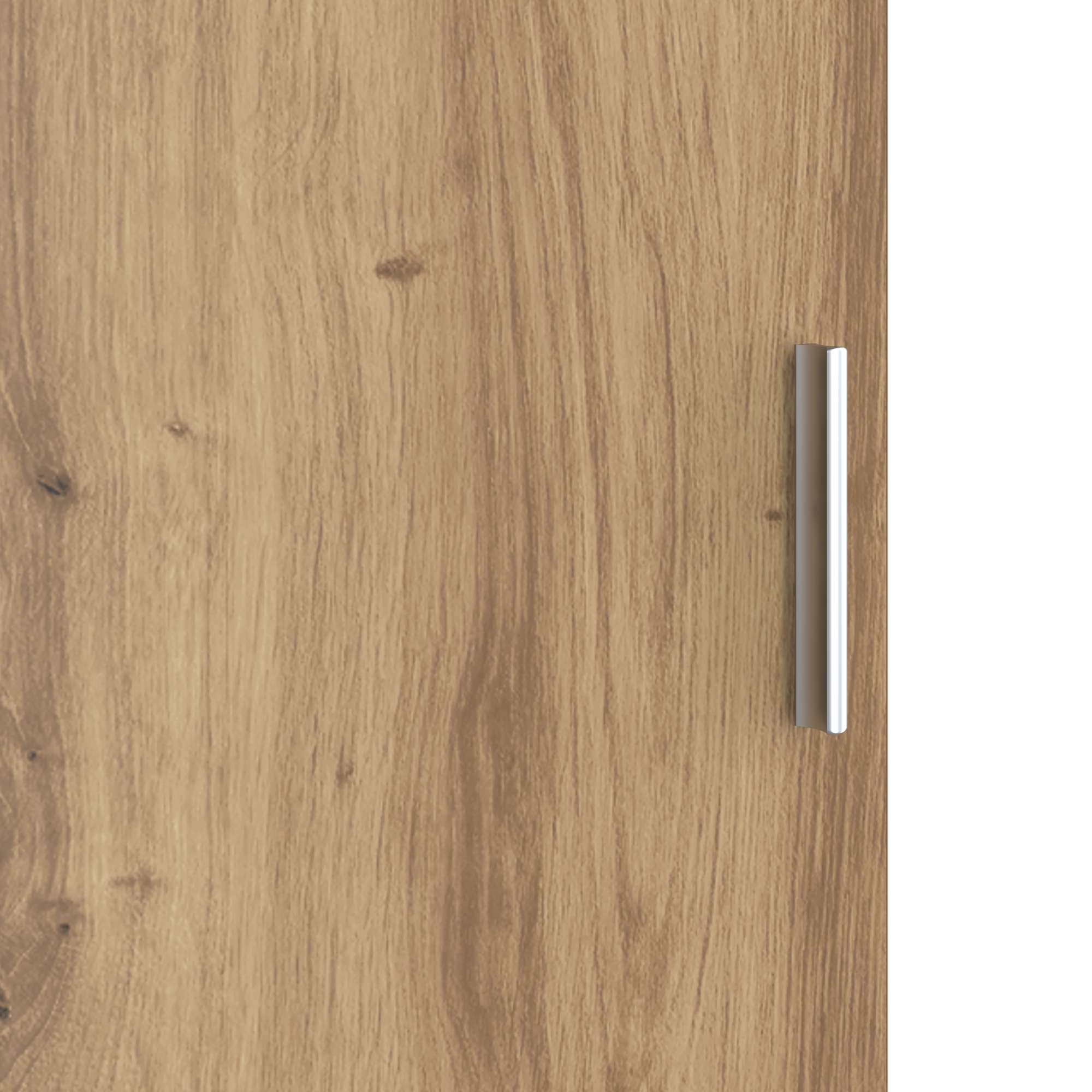 Dieser Artisan Eichen Buffet-Schrank ist eine stylische und funktionale Aufbewahrungslösung, die viel Platz für Organisation und Präsentation bietet und die Atmosphäre jedes Raumes aufwertet. Aus massiver Eiche gefertigt und mit einem schönen Artisan Eichen-Finish, bringt er modernen Charme und passt sich ideal an verschiedene Wohnstile an – sei es im Esszimmer, Wohnzimmer oder Büro. Viel Stauraum: Der Schrank hat zwei große Türen mit eingebauten Regalen, ideal zum Organisieren von Geschirr, Essentials oder um Deko auszustellen. Stylisches Design: Mit seinem modernen matten Finish und der rustikalen Textur passt dieser Schrank problemlos in jeden modernen Raum und verleiht einen eleganten Touch. Vielseitig einsetzbar: Perfekt für verschiedene Arten von Nutzung, sei es als Buffet für Feiern, Konsolentisch im Eingangsbereich oder als Vitrine – er ist flexibel und erfüllt viele Bedürfnisse. Hochwertige Verarbeitung: Aus massiver Eiche und robustem Holzwerkstoff gefertigt, garantiert er Langlebigkeit und Zuverlässigkeit und bleibt trotzdem leicht für einfache Handhabung und Montage. Einfach zu pflegen: Die glatte Oberfläche des Schranks ermöglicht eine einfache Reinigung; einfach mit einem weichen, trockenen Tuch abstauben, um sicherzustellen, dass er stets ansprechend aussieht.