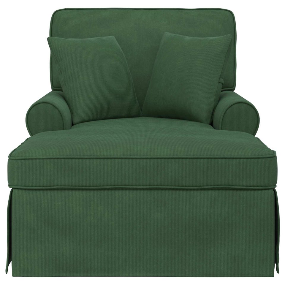 Diese moderne Chaiselongue mit Rock bringt den Charme von stilvoller Eleganz in dein Zuhause. Sie wurde für Stil und Funktion entworfen und bringt ein modernes Flair in jedes Wohnzimmer. Ihr gerippter Stoff und das Rockdesign sorgen für ein sauberes, elegantes Aussehen, das perfekt für Innenräume ist. In ihrer rechteckigen Form und mit weicher Polsterung ist diese Lounge ideal, um nach einem langen Arbeitstag zu relaxen. Sie bietet ein warmes, einladendes Gefühl, das dich in den Komfort hüllt. Premium-Rippstoff Diese Chaiselongue hat einen hochwertigen Rippstoff, der sich weich anfühlt und das luxuriöse Gefühl stärkt. Neben der Eleganz sorgt der Stoff auch für Haltbarkeit und widersteht dem täglichen Gebrauch. Funktionales Rockdesign Der schicke Rock ist nicht nur schön, indem er die Beine verdeckt, sondern verhindert auch Staubansammlungen. Dieses durchdachte Designdetail passt perfekt zum modernen Stil und verbindet Form mit Funktion. Abnehmbare Kissen Mit praktischen Reißverschlusskissen versprechen der Sitz und die Armlehnen Komfort und lassen sich einfach abnehmen. Sie sorgen für unkomplizierte Pflege und erhöhen die Lebensdauer. Gepolsterte Armlehnen Genieße zusätzlichen Komfort mit den stark gepolsterten Armlehnen. Diese Funktion fördert die Entspannung und macht diese Lounge zur perfekten Wahl für entspannte und gemütliche Zeiten. Nur für den Innenbereich Diese Chaiselongue wurde speziell für den Innenbereich entworfen und passt hervorragend in jedes Wohnzimmer. Ihre Materialien und Merkmale sind auf die Bedürfnisse des Indoor-Komforts und der Ästhetik abgestimmt.