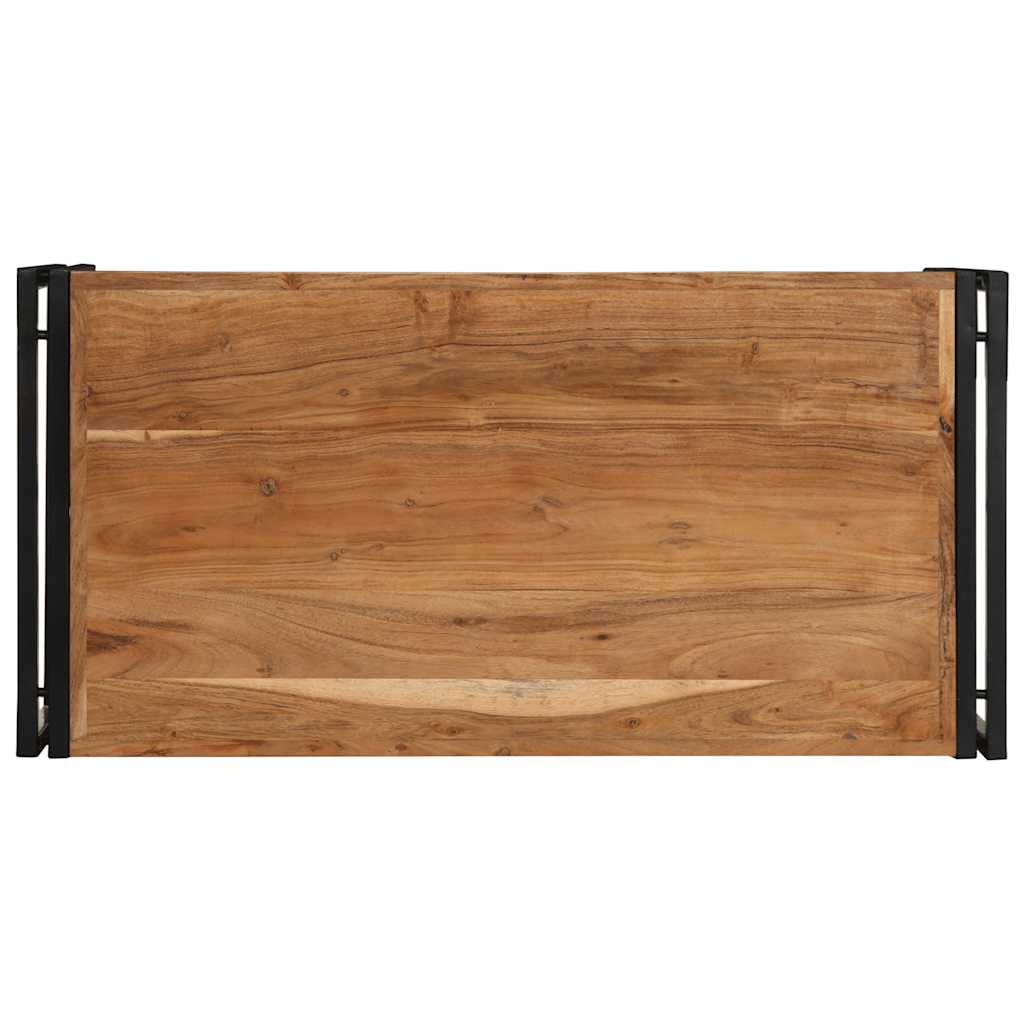 Dieser einzigartige Kaffeetisch ist der perfekte Ausgangspunkt für entspannte Stunden mit Familie und Freunden! Robust und stabil: Akazienholz ist für seine Festigkeit und Haltbarkeit bekannt. Seine vielfältige Farbe und seine einzigartige Maserung sorgen für eine attraktive Optik. Dank seiner ausgezeichneten Stabilität und Witterungsbeständigkeit eignet es sich ideal für die Herstellung von Innen- und Außenmöbeln.Stabil und haltbar: Mit einem pulverbeschichteten Eisengestell versehen, verleiht der Tisch deinem Interieur eine industrielle Note und bietet auch außergewöhnliche Haltbarkeit, Stabilität und Korrosionsbeständigkeit.Stabile und robuste Tischplatte: Die stabile Tischplatte bieten den idealen Platz für Getränke oder andere Sachen, die du griffbereit haben möchtest.Unbehandelte Oberfläche: Dieser Beistelltisch ist aus unbehandeltem Massivholz gefertigt, sodass du ihn entweder in seinem natürlichen Zustand belassen oder ihn passend zu deiner Einrichtung streichen kannst. Gut zu wissen:Jedes Stück ist ein Unikat, das in Farbe und Maserung variiert. Die Lieferung erfolgt in zufälliger Reihenfolge, wodurch die Exklusivität und Individualität deines Produkts gewährleistet wird.
