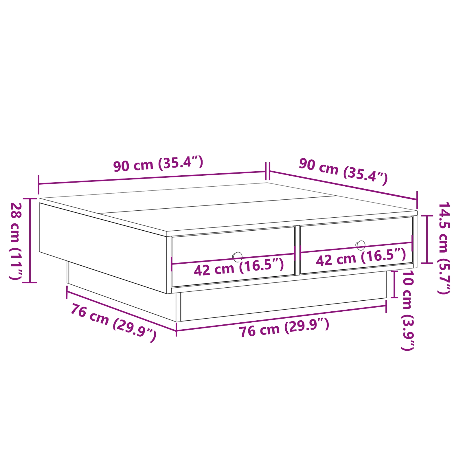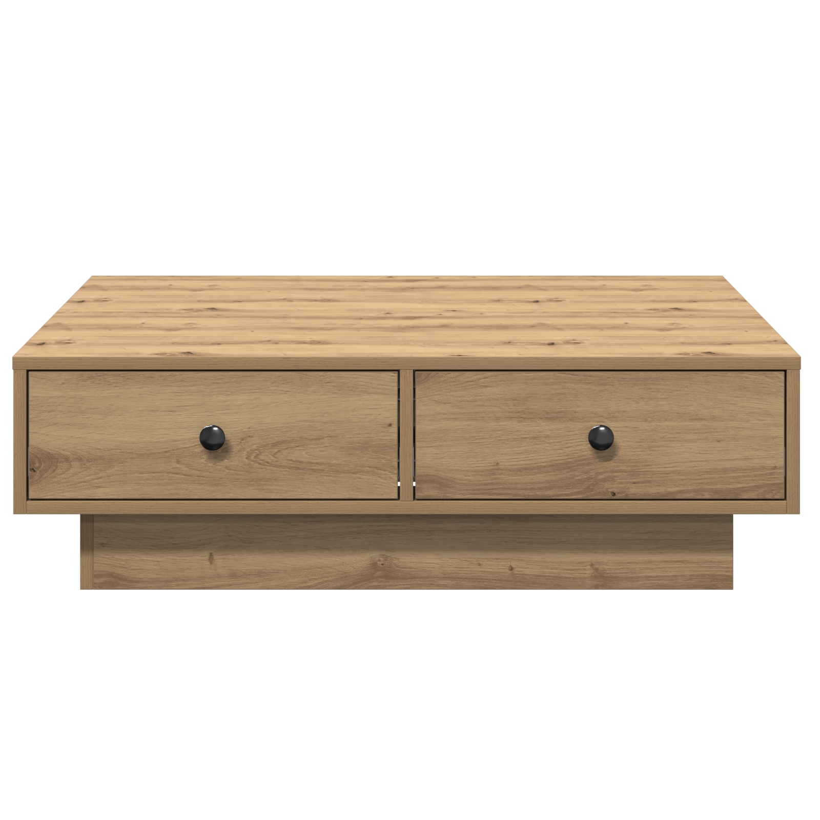 Dieser Couchtisch ist eine stylische und praktische Ergänzung für dein Wohnzimmer. Er kombiniert modernes Design mit einem hübschen Eichenfinish, das perfekt für Getränke, Magazine oder Deko ist und die Atmosphüre deines Raumes aufwertet. Stylisches Design: Der schicke Look dieses Couchtisches macht ihn zum Highlight in deinem Wohnzimmer. Sein elegantes Finish passt gut zu vielen Einrichtungsstilen und bringt Charakter rein, ohne zu aufdringlich zu sein. Geräumige Oberfläche: Die Tischplatte von 90 x 90 cm ist super für deine Getränke, Bücher oder persönlichen Sachen, damit dein Wohnzimmer ordentlich bleibt. Robustes Material: Aus massiver Eiche gefertigt, hält dieser Couchtisch dem täglichen Gebrauch stand und sieht dabei gut aus, was ihn zu einer dauerhaften Ergänzung deines Zuhauses macht. Funktionale Aufbewahrung: Er sieht nicht nur schick aus, sondern hat auch zwei Schubladen für Fernbedienungen, Magazine und Kleinkram, damit alles griffbereit, aber nicht sichtbar ist. Pflegeleicht: Dank der matten Oberfläche ist es super einfach, diesen Tisch in Schuss zu halten; einfach mit einem trockenen Tuch abwischen.