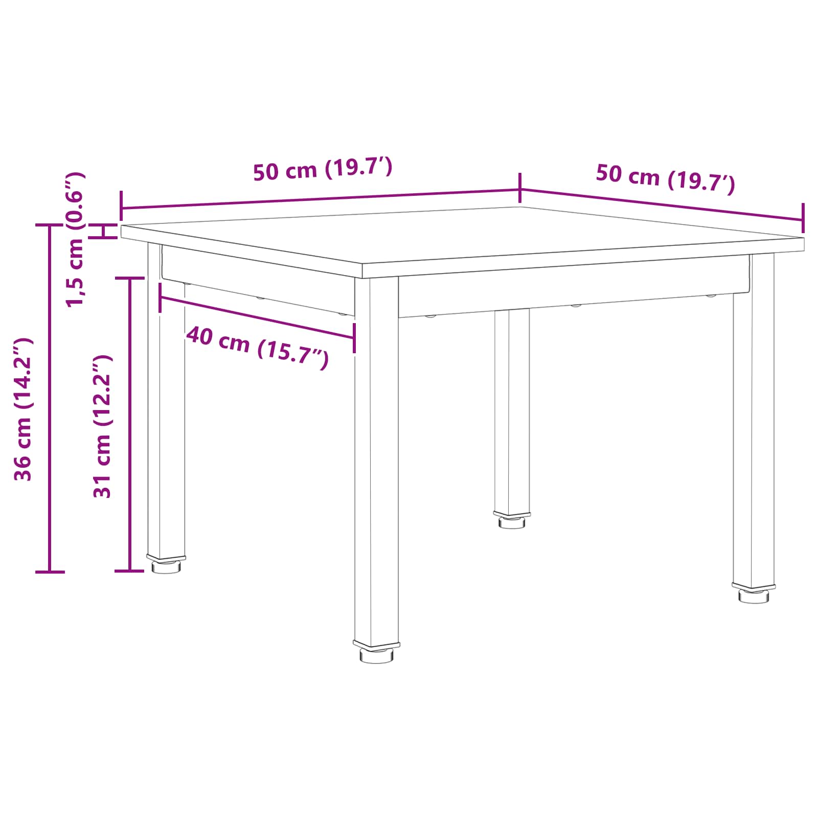 - Gesamtabmessungen: 50 x 50 x 36 cm (L x B x H)