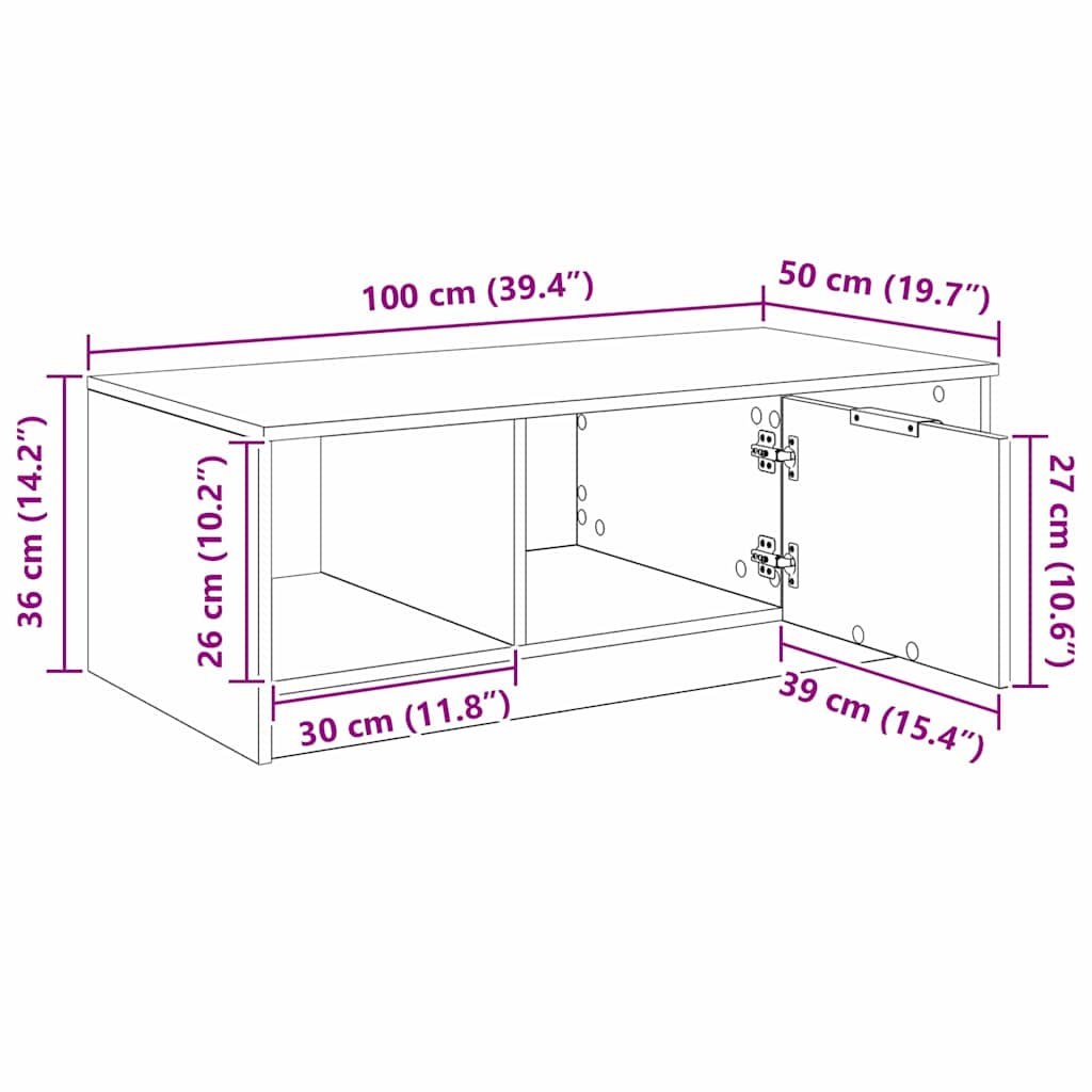Dieser Couchtisch aus Holzwerkstoff hat einen tollen rustikalen Charme und ist die perfekte Wahl für alle, die ihr Wohnzimmer aufpeppen wollen. Die rechteckige Form und die strukturierte Oberfläche geben ihm einen stylishen Look. Mit viel Platz auf der Oberfläche ist er ideal für Kaffeetassen, Magazine und andere Kleinigkeiten – perfekt für gemütliche Familienmomente oder entspannte Morgen. Baumaterial aus Holzwerkstoff: Dieser Couchtisch ist aus stabilem Holzwerkstoff gefertigt, also hält er echt lange. Die Struktur bringt rustikalen Charme in dein Zuhause und trotzt dem täglichen Verschleiß. Praktische Brettregale: Kommt mit Brettregalen, die jede Menge Stauraum bieten – denk an Magazine und Bücher. Diese Regale verbinden Funktionalität mit schickem Design und halten all deine Essentials griffbereit. Vollendete Rückseite: Mit einer schön abgeschlossenen Rückseite sieht er von jeder Seite gut aus. Egal, ob er an der Wand steht oder mitten im Raum steht, er hinterlässt immer einen ordentlichen Eindruck. Geschlossener Stauraum: Die Scharniertüren ermöglichen es dir, Kabel oder Werkzeuge ordentlich zu verstauen, was deinen Wohnraum clean aussehen lässt. So hast du Ordnung, aber alles bleibt griffbereit, wenn du es brauchst. Einfache Wartung: Leicht zu pflegen – einfach mit einem feuchten Tuch abwischen, damit er frisch aussieht. Dieses pflegeleichte Stück bleibt lange neu.