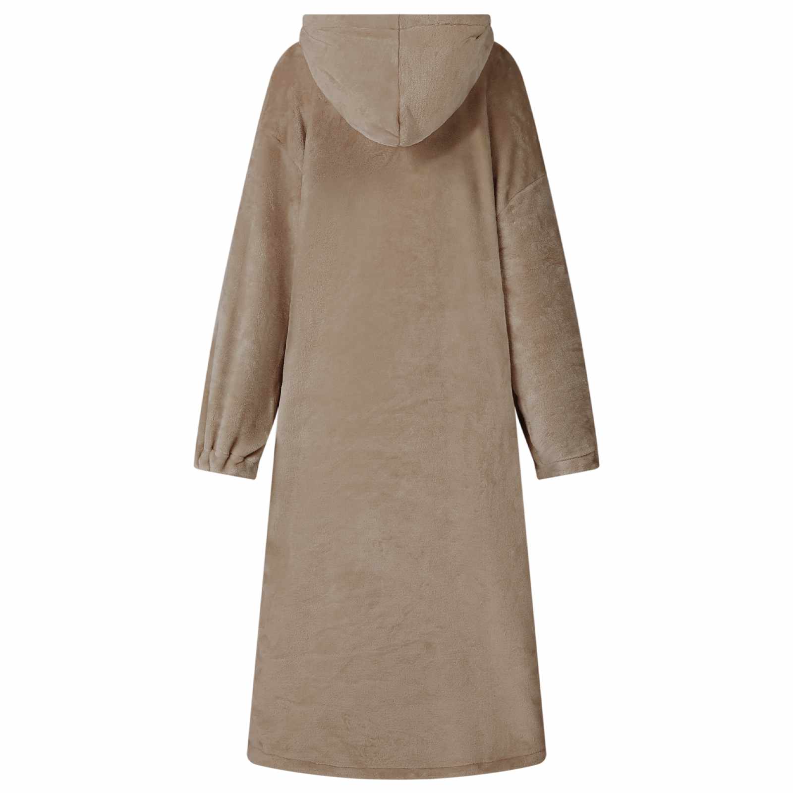 Dieser flauschige Decken-Hoodie kombiniert die Wärme einer Decke mit dem praktischen Komfort von Alltagskleidung. Hergestellt aus weichem Flanell, bietet er dir Wohlgefühl an kalten Herbst- und Winterabenden. Sein großer, lockerer Schnitt sorgt für Bewegungsfreiheit und gibt dir eine gemütliche Umarmung. Ideal zum Chillen im Wohnzimmer oder zum Lesen an einem kühlen Tag, erfüllt sein stylisches, aber funktionales Design die Wünsche aller, die Komfort lieben und keine Kompromisse bei der Bequemlichkeit eingehen wollen. Weicher Flanell: Der Hoodie besteht aus Flanell, das für seine weiche Haptik und gute Wärmehaltung bekannt ist. So bleibst du an kalten Tagen schön warm, ohne schwer eingepackt zu sein. Der Stoff sorgt für extra Komfort und macht ihn zur ersten Wahl für entspannte Stunden zu Hause. Praktische Tasche: Mit einer großen Tasche ausgestattet, die perfekt ist, um Snacks, Fernbedienungen oder Handys in Reichweite zu haben, während du es dir gemütlich machst. Das macht alles noch einfacher und sorgt dafür, dass du länger chillen kannst, ohne ständig aufstehen zu müssen. Extra-warme Kapuze: Die oversized Kapuze bietet dir zusätzlich Schutz und Komfort, was sie ideal für kalte Abende im Schlafzimmer oder Wohnzimmer macht. So kannst du sowohl entspannen als auch schlafen und hast immer die perfekte Wärme. Tragbar und leicht: Der Decken-Hoodie ist leicht und praktisch zum Tragen oder für Reisen. So ist er ein vielseitiger Teil deiner Loungewear. Er lässt sich auch easy von Raum zu Raum mitnehmen. Einfache Pflege: Die Pflege ist kinderleicht. Vermeide einfach scharfe Chemikalien und Bleichmittel, dann bleibt der Hoodie lange schön und weich. So kannst du dich auf das Wesentliche konzentrieren und bequem relaxen.