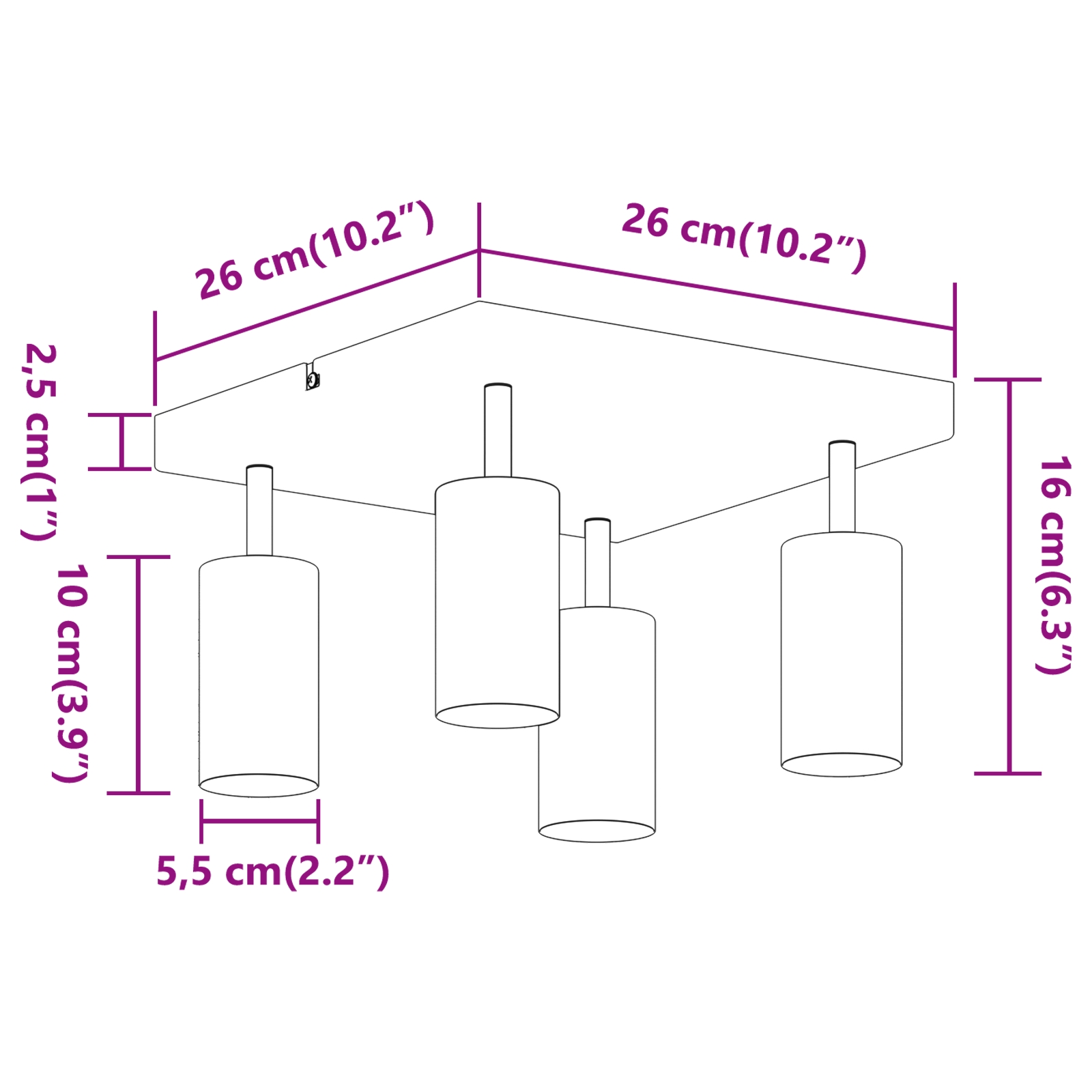 - Abmessungen: 26 x 26 x 16.5 cm (B x L x H)