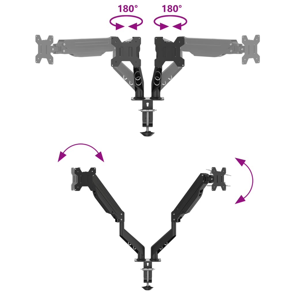 Mit diesem Doppel-Monitorarm kannst du deinen Bildschirm richtig positionieren, was sich positiv auf deine Produktivität, Gesundheit und dein Wohlbefinden auswirkt. Vielfach verstellbar: Der doppelte Monitorarm verfügt über eine Gasfeder, die eine 90°-Aufwärtsneigung, 70°-Abwärtsneigung, 360°-Drehung des Bildschirms und einen Schwenkbereich von bis zu 180° ermöglicht. Durch die verstellbare Höhe und den verstellbaren Winkel kannst du Schultern und Nacken entlasten.Kompatibilität: Der Doppel-Monitorarm ist mit Bildschirmen von maximal 27 Zoll mit VESA-Montagelöchern von 75x75 mm oder 100x100 mm auf der Rückseite kompatibel. Die maximale Belastbarkeit dieser Halterung beträgt 20 kg.Langlebig und platzsparend: Der Monitorarm ist aus Stahl gefertigt und daher langlebig und stabil. Verwende den dualen Monitorarm, um deinen Bildschirm zu erhöhen, Platz zu schaffen und die Vorteile eines sauberen und geräumigen Schreibtisches zu genießen.Zwei Montagemöglichkeiten: Dieser Doppelmonitorarm kann auf zwei verschiedene Arten montiert werden: entweder mit einer C-Klemme oder über Kabeldurchführung. Er eignet sich für Schreibtische mit einer Stärke zwischen 10 mm und 100 mm. Wähle einfach die bevorzugte Montageoption aus und schaffe zusätzlichen Platz auf deinem Schreibtisch.Kabelmanagement: Durch das Kabelmanagement-System wird Kabelsalat vermieden, um für mehr Ordnung in deinem Büro zu sorgen.