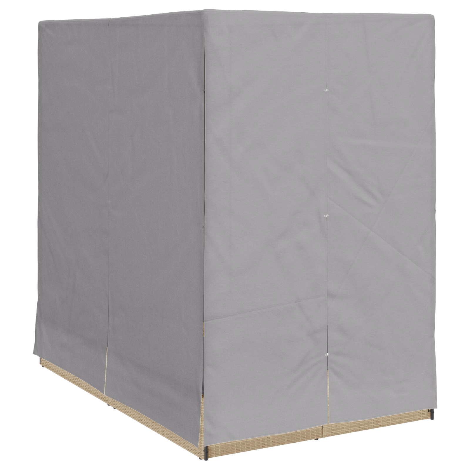 Dieses schicke Outdoor Lounge-Bett verbindet Stil und Komfort, perfekt für deine Terrasse oder deinen Garten. Aus robustem Poly-Rattan in sanftem Beige und Hellgrau, fügt es sich super in jede Außenumgebung ein und sorgt dafür, dass du und deine Freunde einen chilligen Rückzugsort genießen könnt. Die verstellbaren Rückenlehnen lassen sich entsprechend anpassen, damit du die perfekte Liegeposition findest – ideal zum Chillen, Lesen oder Sonnenbaden. Das schicke Dach mit Vorhängen bietet viel Schatten und Privatsphäre, perfekt für romantische Abende oder einen entspannten Rückzugsort. Robuste Materialien stellen sicher, dass die Liege UV- und fleckenbeständig ist, und bei jedem Wetter gut aussieht und lange hält. Mit den Abmessungen von 203 x 128 x 202 cm ist genug Platz für zwei Erwachsene, um sich bequem zu entspannen – perfekt für Paare oder Freunde. Super für Gärten, Terrassen und Poolseiten; diese Sonnenliege bringt dein Outdoor-Chill-Feeling nach ganz oben.