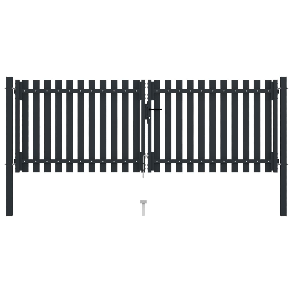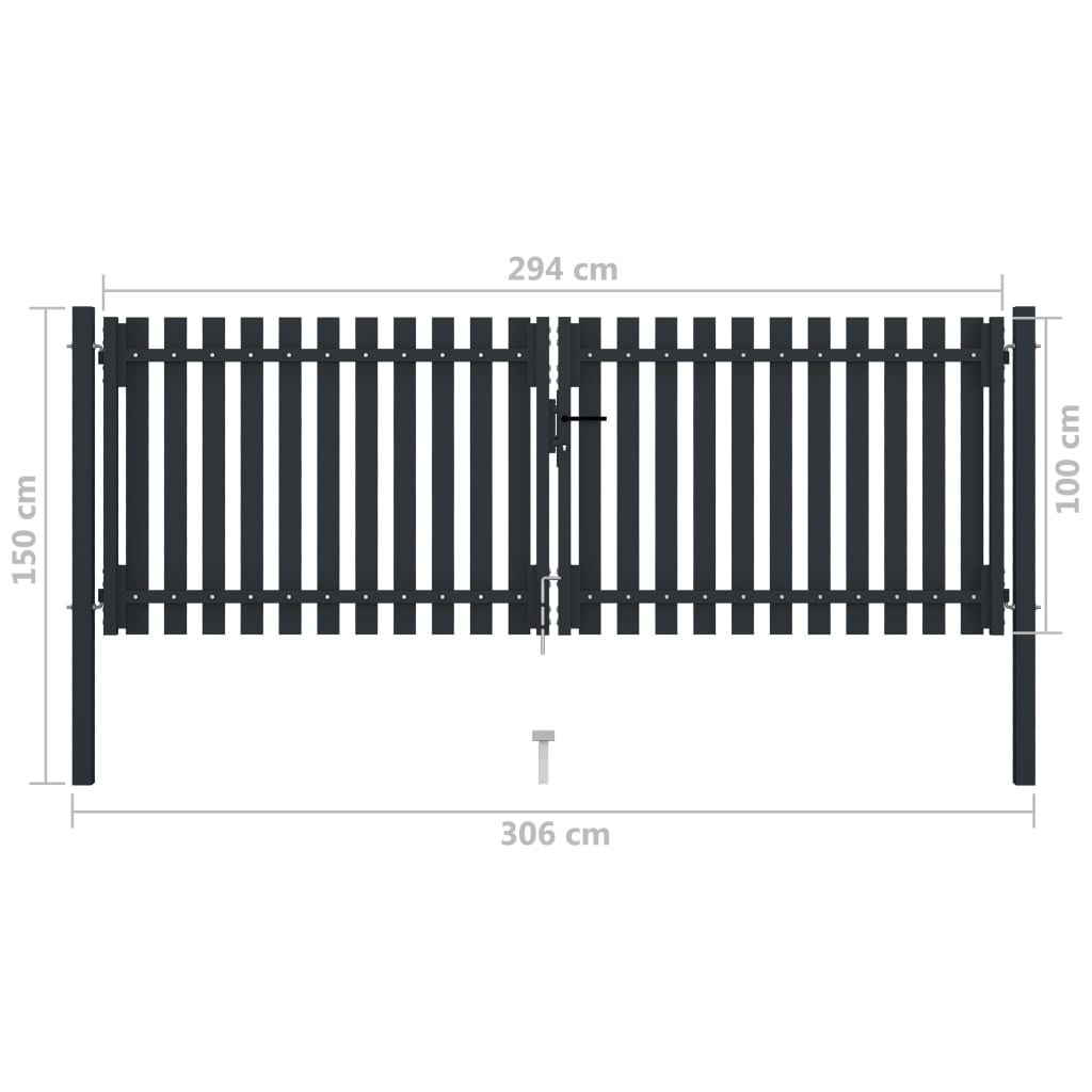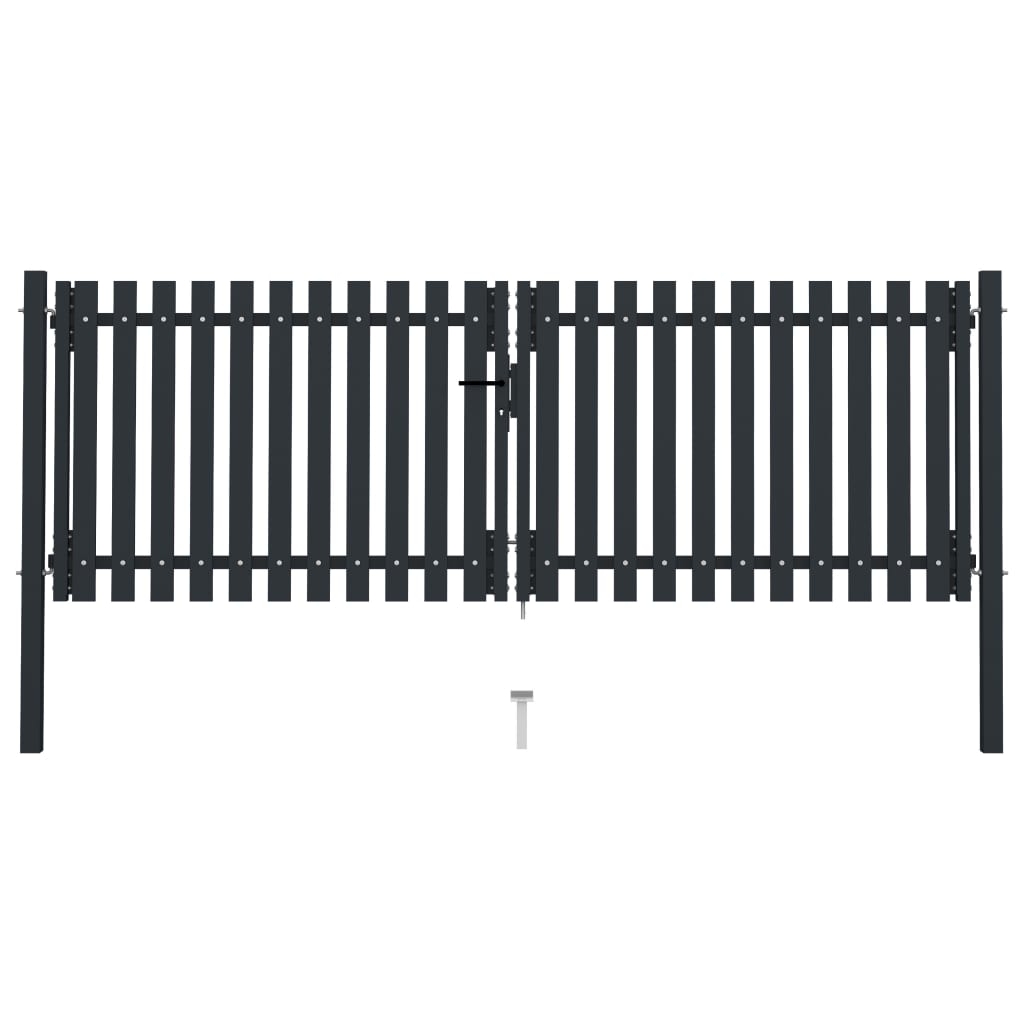 Dieses Doppelflügel-Zauntor bietet einen zeitgemäß gestalteten Eingang, um Ihren Garten vor der Außenwelt zu verbergen. Dieses Tor besteht aus pulverbeschichtetem Stahl und ist daher äußerst robust. Dieses Gartentor mit einem Schloss, einem Griff und einem Erdungsstift bietet ein hohes Maß an Sicherheit und Komfort.