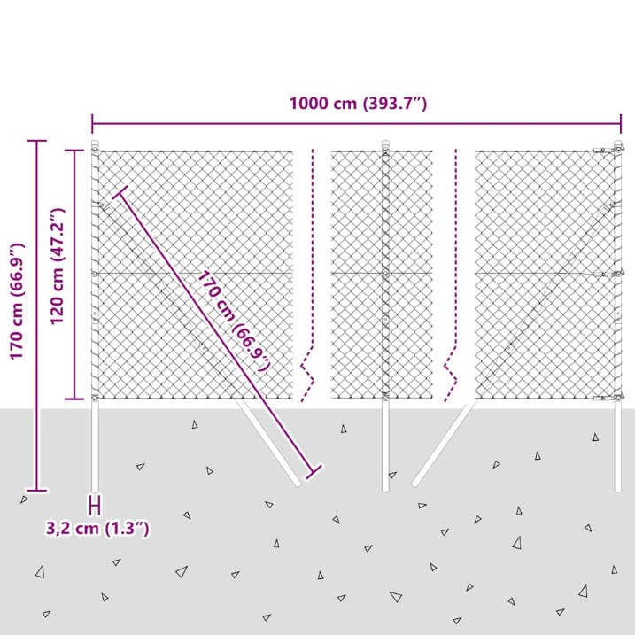 Dieser Drahtzaun ist eine smarte Wahl, um eine klare Grenze in deinen Außenbereichen zu setzen und gleichzeitig Sicherheit und Praktikabilität zu bieten. Hergestellt aus pulverbeschichtetem Stahl, hat er ein helles grünes Finish, das in deinem Garten fantastisch aussieht und für stabile Unterstützung sorgt. Hohe Dauerhaftigkeit: Aus robusten Materialien für draußen gefertigt, hält er verschiedenen Wetterbedingungen stand und behält seine Form. Modernes Design: Die glatte, pulverbeschichtete Oberfläche verhindert Rost und sieht gut aus, während sie gut funktioniert. Universelle Verwendung: Ideal für viele Aufgaben, vom Markieren von Grenzen bis hin zu Gartenzäunen, dieser Zaun erfüllt deine Anforderungen. Sicherer Bodenfix: Mit Zubehör zum festen Verankern, damit er bei Wind nicht verrutscht. Einfach zu montieren: Der schnelle Aufbau erlaubt es dir, es mit nur wenigen Werkzeugen zügig zu erledigen und dein Projekt schnell abzuschließen.