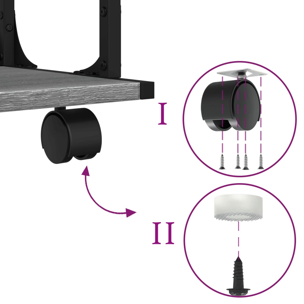 Mit diesem Druckerständer mit 2 Ablagen kannst du alles griffbereit aufbewahren und für Ordnung in deinem Büro oder Arbeitszimmer sorgen. Langlebiges Material: Holzwerkstoff ist ein Material von außergewöhnlicher Qualität mit glatter Oberfläche, das sich durch Festigkeit, Stabilität und Feuchtigkeitsbeständigkeit auszeichnet. Der Stahlrahmen verleiht dem Möbelstück Robustheit und Stabilität. Druckertisch mit 2 Ablagen: Die Oberplatte ist für Drucker und Faxgeräte bestimmt, darunter befindet sich Platz für Akten, Dokumente, Bücher und anderes Büromaterial. So kannst du alles griffbereit halten und für Ordnung auf deinem Arbeitstisch sorgen. Leicht zu bewegen: Dieser Druckertisch verfügt über 4 Rollen, von denen 2 arretierbar, sodass er sich jederzeit flexibel umstellen lässt und stabil steht. Multifunktionaler Organizer: Dieses Büromöbel lässt sich nicht nur als Druckerständer, sondern auch als Bücherregal, Aktenregal und sogar als Nachttisch, Couchtisch, Beistelltisch usw. verwenden. Er findet auch in der Küche Platz, um Gewürze, Küchenutensilien, Teller und Geschirr ordentlich aufzubewahren. Flexibler Einsatz: Den Druckerhalter kannst du entweder ohne Rollen direkt auf eine Bodenmatte platzieren oder die Rollen für eine einfache Mobilität anbringen.