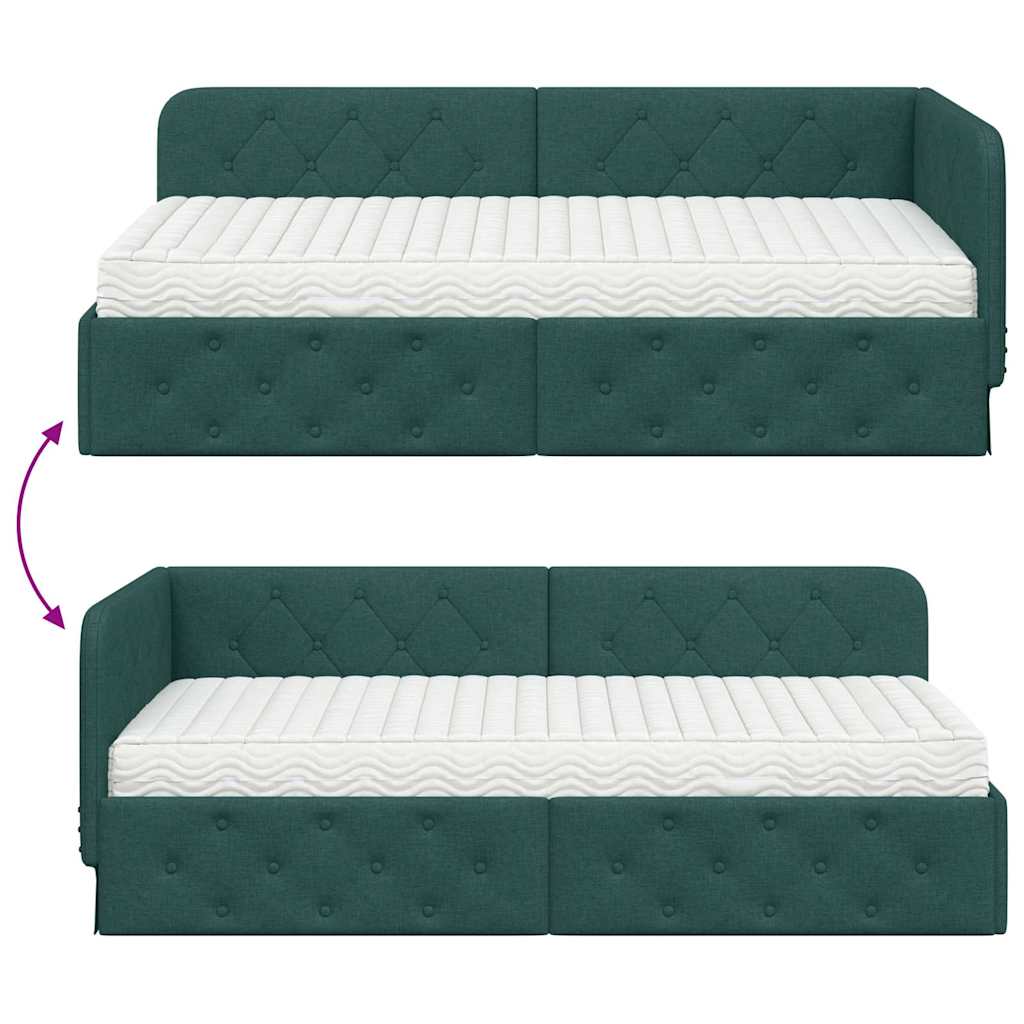 Das moderne Stoff-Eckbettgestell passt super in jede Ecke deines Schlafzimmers, spart Bodenfläche und verleiht deinem Raum einen besonderen Look. Mit seinem flexiblen Design kannst du es als gemütliches Tagesbett oder als komfortable Schlafgelegenheit nutzen. Das schlanke, rechteckige Rahmen-Design ist perfekt für kleine Wohnungen oder minimalistische Einrichtungsstile. Dieses Bettgestell vereint schickes Design mit Funktionalität und ist ideal für alle, die ihren Schlafraum optimal nutzen wollen, ohne auf Stil zu verzichten. Platzsparende Konstruktion Das L-förmige Design nutzt Ecken clever aus und schafft mehr Platz in deinem Schlafzimmer. Flexibles Kopfteil Du kannst das kürzere Kopfteil nach deinen Wünschen rechts oder links anbringen, was Flexibilität bietet. Multifunktionale Nutzung Einfach zwischen Sofa und Bett wechseln, perfekt für Gäste oder das gemütliche Chillen. Langlebige Bauweise Robustes Sperrholz sorgt für Stabilität, während der atmungsaktive Stoff für angenehmen Komfort sorgt. Einfache Pflege Ein trockener Wisch mit einem Tuch, und schon ist es wieder sauber – ganz unkompliziert.