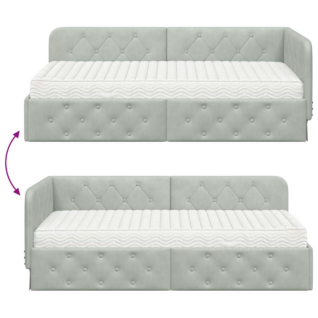 Dieses moderne Eckbettgestell bringt Funktionalität und Stil in jedes Schlafzimmer. Mit seinem schicken L-Design aus stabilen Sperrholzrahmen und weichem Samtbezug ist es ideal für Singles und Familien. Es kann sowohl als Sofa als auch als Bett genutzt werden. Der elegante Look verbunden mit den vielseitigen Einsatzmöglichkeiten macht es zum perfekten Möbel für jedes modern eingerichtete Zimmer und sorgt für mehr Komfort und Stil. Rechtwinklige Form: Die rechteckige Form von diesem Bettgestell passt perfekt in Ecken – die ideale Lösung, um den Platz im Schlafzimmer besser zu nutzen. Sein schlankes Design fügt sich wunderbar in die moderne Einrichtung ein und bietet genug Platz zum Sitzen und Schlafen. Fester Lattenrost: Das Bettgestell hat einen stabilen Lattenrost aus hochwertigem Holz oder Metall. Dieser sorgt für zuverlässigen Halt und bleibt über die Zeit in Form, damit du gut schlafen kannst, ohne dass der Stil leidet. Samtmaterial: In luxuriösen Samt gehüllt, strahlt dieses Bettgestell Eleganz und Stil aus. Die weiche Oberfläche macht es zu einem einladenden Platz zum Entspannen oder Ausruhen und passt toll zu vielen verschiedenen Einrichtungsstilen. Integrierte Schaum-Matratze: Mitgeliefert wird eine Schaum-Matratze, die für ihren Komfort und ihre Druckentlastung bekannt ist. Sie passt sich deinem Körper an und sorgt so für einen erholsamen Schlaf. Pflegehinweise: Damit der Samt immer schön aussieht, einfach regelmäßig mit einem trockenen Tuch abwischen. Verzichte auf starke Chemikalien oder nasse Reinigungsmethoden, damit der Samt seine angenehme Haptik behält.