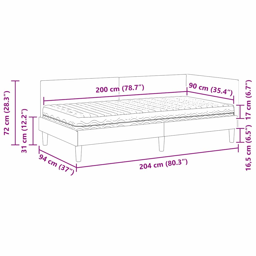 - 1 x Matratze: 200 x 90 x 17 cm (LxBxH)