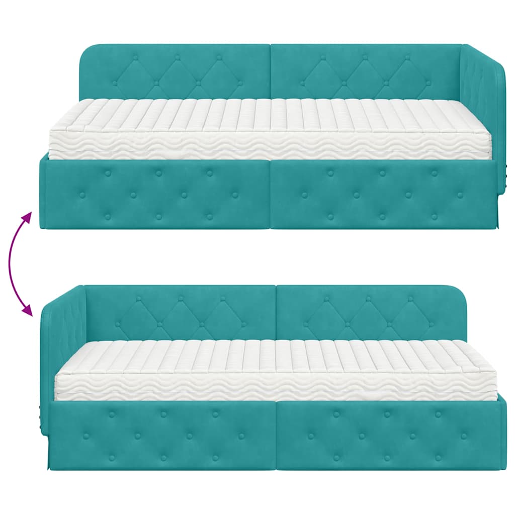 Dieses moderne Eckbettgestell bringt Funktionalität und Stil in jedes Schlafzimmer. Mit seinem schicken L-Design aus stabilen Sperrholzrahmen und weichem Samtbezug ist es ideal für Singles und Familien. Es kann sowohl als Sofa als auch als Bett genutzt werden. Der elegante Look verbunden mit den vielseitigen Einsatzmöglichkeiten macht es zum perfekten Möbel für jedes modern eingerichtete Zimmer und sorgt für mehr Komfort und Stil. Rechtwinklige Form: Die rechteckige Form von diesem Bettgestell passt perfekt in Ecken – die ideale Lösung, um den Platz im Schlafzimmer besser zu nutzen. Sein schlankes Design fügt sich wunderbar in die moderne Einrichtung ein und bietet genug Platz zum Sitzen und Schlafen. Fester Lattenrost: Das Bettgestell hat einen stabilen Lattenrost aus hochwertigem Holz oder Metall. Dieser sorgt für zuverlässigen Halt und bleibt über die Zeit in Form, damit du gut schlafen kannst, ohne dass der Stil leidet. Samtmaterial: In luxuriösen Samt gehüllt, strahlt dieses Bettgestell Eleganz und Stil aus. Die weiche Oberfläche macht es zu einem einladenden Platz zum Entspannen oder Ausruhen und passt toll zu vielen verschiedenen Einrichtungsstilen. Integrierte Schaum-Matratze: Mitgeliefert wird eine Schaum-Matratze, die für ihren Komfort und ihre Druckentlastung bekannt ist. Sie passt sich deinem Körper an und sorgt so für einen erholsamen Schlaf. Pflegehinweise: Damit der Samt immer schön aussieht, einfach regelmäßig mit einem trockenen Tuch abwischen. Verzichte auf starke Chemikalien oder nasse Reinigungsmethoden, damit der Samt seine angenehme Haptik behält.