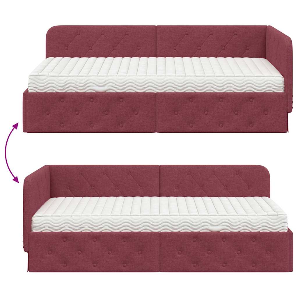 Das moderne Stoff-Eckbettgestell passt super in jede Ecke deines Schlafzimmers, spart Bodenfläche und verleiht deinem Raum einen besonderen Look. Mit seinem flexiblen Design kannst du es als gemütliches Tagesbett oder als komfortable Schlafgelegenheit nutzen. Das schlanke, rechteckige Rahmen-Design ist perfekt für kleine Wohnungen oder minimalistische Einrichtungsstile. Dieses Bettgestell vereint schickes Design mit Funktionalität und ist ideal für alle, die ihren Schlafraum optimal nutzen wollen, ohne auf Stil zu verzichten. Platzsparende Konstruktion Das L-förmige Design nutzt Ecken clever aus und schafft mehr Platz in deinem Schlafzimmer. Flexibles Kopfteil Du kannst das kürzere Kopfteil nach deinen Wünschen rechts oder links anbringen, was Flexibilität bietet. Multifunktionale Nutzung Einfach zwischen Sofa und Bett wechseln, perfekt für Gäste oder das gemütliche Chillen. Langlebige Bauweise Robustes Sperrholz sorgt für Stabilität, während der atmungsaktive Stoff für angenehmen Komfort sorgt. Einfache Pflege Ein trockener Wisch mit einem Tuch, und schon ist es wieder sauber – ganz unkompliziert.