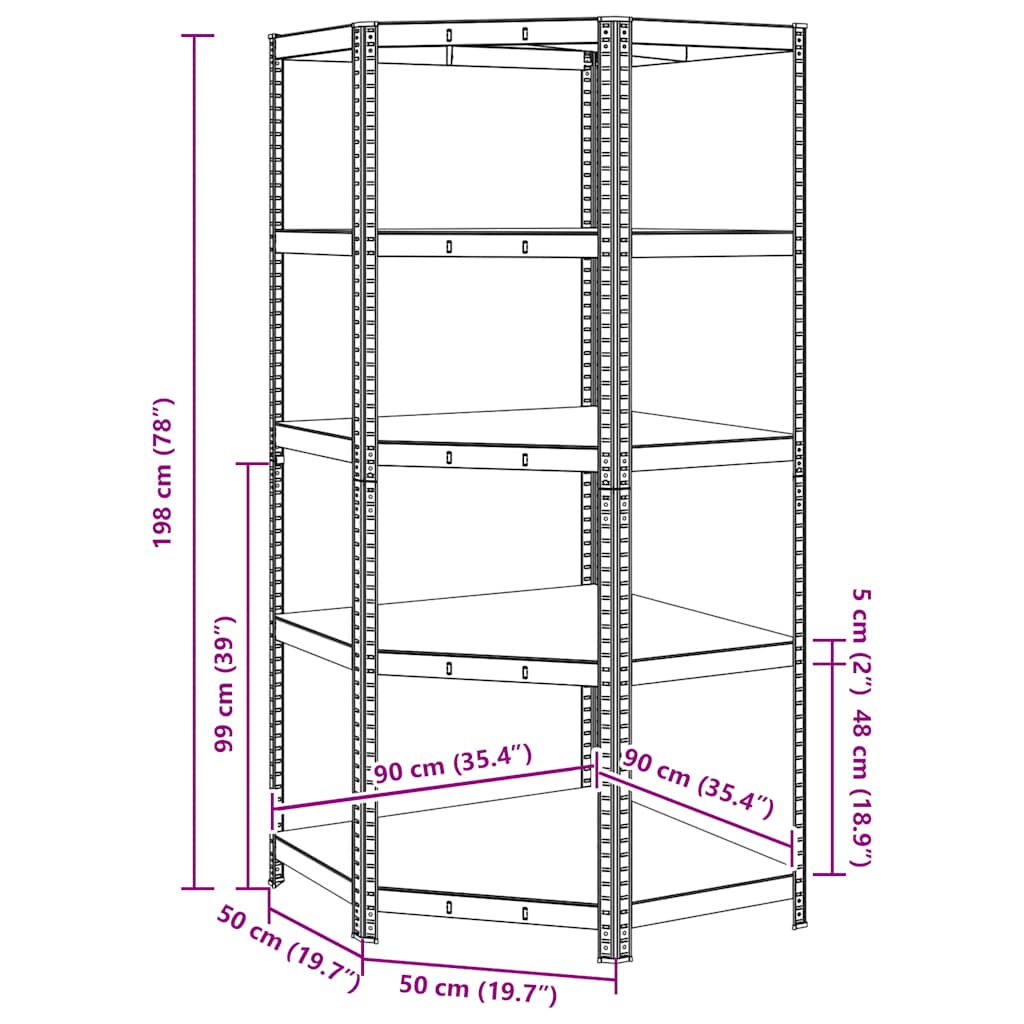 Dieses Eckregal ist sowohl für den privaten als auch für den gewerblichen Bereich hervorragend geeignet und bieten viel Platz, um alle Gegenstände ordentlich aufzubewahren. Robustes Material: Das Lagerregal besteht aus einem Stahlrahmen und Holzwerkstoffplatten. Der Stahlrahmen garantiert Robustheit und Stabilität, während der Holzwerkstoff Stärke, Stabilität und Beständigkeit gegen Feuchtigkeit bietet.Hohe Tragfähigkeit: Dank des dicken Materials, der 2 Verstärkungsstangen unter jedem Regalboden und der schraubenlosen Konstruktion hat dieses Garagenregal eine hohe Tragfähigkeit.Flexible Lagerung: Dieses Lagerregal kann in zwei separate kleine Regale unterteilt werden. Außerdem sind die Einlegeböden höhenverstellbar. So bietet das Regal reichlich Stauraum für alle Gegenstände, die du organisiert aufbewahren möchtest, um stets für Ordnung und Übersichtlichkeit zu sorgen. Achtung:Um ein Umkippen zu verhindern, muss dieses Produkt mit einer Wandhalterung (nicht im Lieferumfang enthalten) gesichert werden.