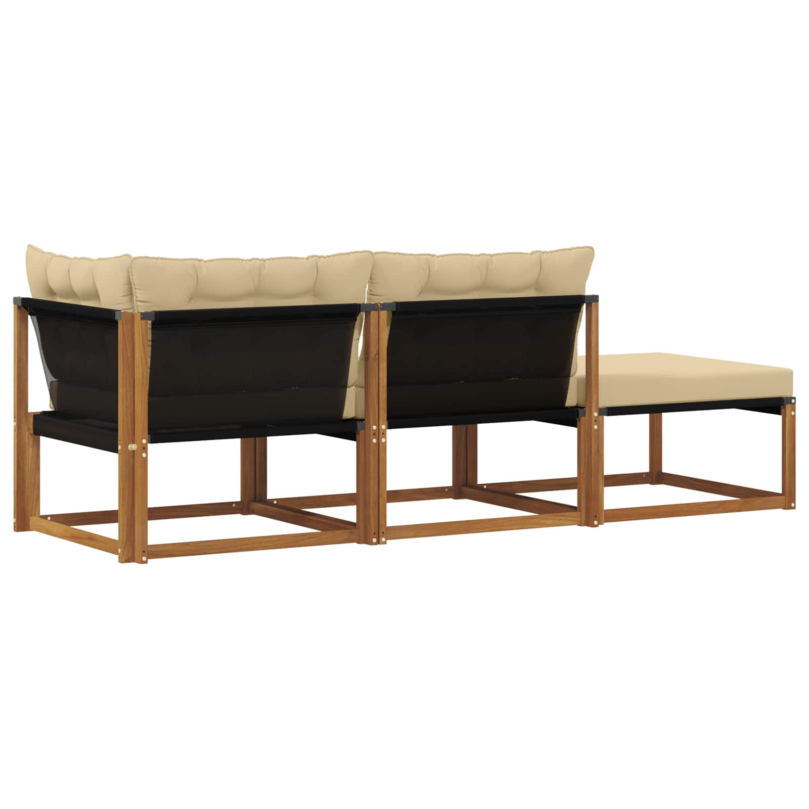Dieses Outdoor-Möbelset macht jede Terrasse, jeden Balkon oder Garten zu einer coolen und bequemen Chill-Zone. Perfekt für entspannte Stunden oder gesellige Abende im Freien! Das moderne, minimalistische Design passt zu fast jedem Außenbereich und bringt Stil und Gemütlichkeit in dein Leben. Mit viel Liebe zum Detail gefertigt, zieht das Set alle Blicke auf sich und sorgt für entspannte Momente mit Stil. Massives Akazienholzgestell - Dieses Sofa ist aus starkem Akazienholz gemacht, das für seine Langlebigkeit und Witterungsbeständigkeit bekannt ist. So kannst du sicher sein, dass es stabil und langlebig ist. Der natürliche Holzton passt super zu deiner Außendekoration. Bequeme Kissen - Jedes modulare Stück hat weiche Kissen aus hochwertigem Polyester, die für Komfort und Langlebigkeit sorgen. Der Stoff ist angenehm weich und trotzdem robust für den Außenbereich. Mit leichtem Schaumstoff bekommst du den perfekten Sitzkomfort. Modulares und flexibles Design - Dank des modularen Formats kannst du das Sofa ganz nach deinen Wünschen anordnen. Ob du es kompakt oder breit haben willst – alles ist möglich! Wetterbeständig - Die Möbel sind perfekt für draußen geeignet! Die gelattete Oberfläche sorgt dafür, dass Wasser schnell abfließt und das Holz schneller trocknet, damit sie lange gut aussieht. Farb- und lichtbeständiger Stoff - Der Textilene-Stoff widersteht der Sonneneinstrahlung und bleibt auch nach langer Zeit schön bunt. Seine strapazierfähige Oberfläche sieht auch nach vielen Sonnenstunden toll aus und hält super lange.
