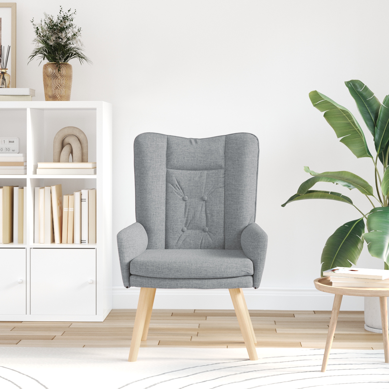 Dieser hellgraue, zeitgenössische Sessel ist eine tolle Kombination aus Komfort und Stil, perfekt für alle, die ihr Wohnzimmer aufpeppen wollen. Mit seiner bequemen Polsterung und schlanken Form ist dieser Stuhl super zum Entspannen, Lesen oder einfach zum Relaxen in deinem Wohnzimmer oder Arbeitszimmer. Bequemes Design: Der Sessel hat ein Feder-/Daunenkissen, das außergewöhnlichen Komfort bietet und der perfekte Platz ist, um nach einem langen Tag zu entspannen. Stylische Optik: Das moderne Design mit hellgrauem Stoff und konischen Holzbeinen verleiht jedem Raum einen besonderen Charakter und fügt sich leicht in verschiedene Einrichtungsstile ein. Robuste Materialien: Aus hochwertigem Polyester und Naturholz hergestellt, sieht dieser Sessel nicht nur toll aus, sondern ist auch für den täglichen Gebrauch gemacht, sodass er sein elegantes Aussehen behält. Platzsparend: Mit einer Breite und Tiefe von 50 cm ist dieser Sessel ideal für kleine Wohnungen oder enge Ecken, sodass du gemütlich sitzen kannst, ohne zu viel Platz zu beanspruchen. Einfacher Zusammenbau: Alles, was du benötigst, ist ein Schraubendreher; die einfache Montage sorgt dafür, dass du deinen neuen Sessel schnell genießen kannst, ohne großen Aufwand.