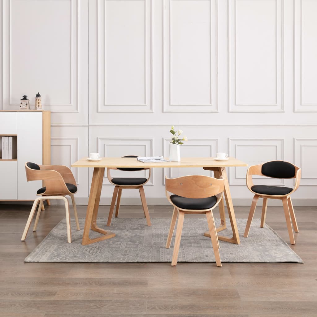 Dieses Set besteht aus 4 Esszimmerstühlen mit schlichtem Design, die höchsten Sitzkomfort bieten. Mit Kunstleder bezogen und dick gepolstert, bietet der Esszimmerstuhl optimalen Komfort. Das robuste Gestell aus Bugholz verleiht ihm einzigartige Schönheit und Stil. Dank des ergonomische Designs ist der Esszimmerstuhl sehr bequem, sodass man stundenlang darauf sitzen kann. Es ist eine perfekte Wahl für Mahlzeiten, Gespräche, Lesen, Fernsehen oder einfach nur zum Entspannen.