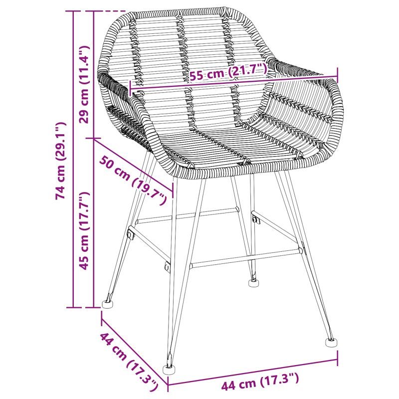 Dieser Esszimmerstuhl vereint funktionale Einfachheit mit stylishen Elementen. Die klaren Linien werten jeden Essbereich auf. Konzipiert für Innenräume, zieht das einzigartige handgewebte Rattan-Material alle Blicke an und passt sich deinem Wohnzimmer oder deiner Küche an. Die angenehme Textur schafft eine einladende Atmosphäre, während die komfortablen Armlehnen und die Rückenlehne dich bei langen Essensrunden unterstützen. Rattan- und Eisenmischung Der Esszimmerstuhl nutzt eine tolle Kombination aus Rattan und Eisen und sieht super schick aus. Das Rattan hat ein warmes, organisches Aussehen und ist gleichzeitig robust genug für den täglichen Gebrauch. Eisenelemente sorgen für Stabilität ohne an Eleganz zu verlieren, damit der Stuhl immer zuverlässig in deinem Zuhause bleibt. Bequem und stützend Mit einer ergonomischen Rückenlehne und Armlehnen sorgt der Stuhl für Komfort auch während langen Essen. Die geschwungene Rückenlehne passt sich gut an deinen Körper an und fördert eine gesunde Haltung. Der handgewebte Rattan macht das Ganze stylish und gemütlich. Funktionale Merkmale Dieser Esszimmerstuhl ist praktisch und hat eine eingebaute Fußstütze für extra Entspannung. Die flachen Armlehnen und der verstärkte Sitz machen ihn absolut alltagstauglich und verbinden schickes Design mit Funktionalität für ein besseres Essen oder Freizeitvergnügen zu Hause. Stil und Vielseitigkeit Der Esszimmerstuhl hat einen modernen Look ohne viel Schnickschnack und passt super zu unterschiedlichen Einrichtungsstilen. Egal ob in der gemütlichen Küche oder im eleganten Esszimmer, die schlichten aber eleganten Linien machen ihn zur perfekten Wahl für alle Gelegenheiten. Montageanforderungen Einfache Montage nötig mit beiliegenden Anleitungen. Der Aufbau des Stuhls ist unkompliziert und benötigt nur ein paar Werkzeuge und zwei Leute, um sicherzustellen, dass alles ordentlich sitzt. Nach dem Aufbau bleibt dir dank seiner stabilen Konstruktion lange Freude.